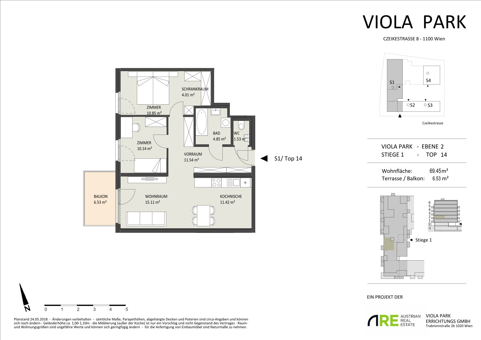 Der Viola Park, ein modernes Wohnbauprojekt, wurde 2019 in unmittelbarer Nähe zur U1-Station Altes Landgut fertiggestellt. In Nachbarschaft zur Generali-Arena und dem Naherholungsgebiet am Laaer Berg bietet das Areal modernes Wohnen und eine exzellente Anbindung an das öffentliche Verkehrsnetz. Das Projekt umfasst vier Gebäudeteile mit insgesamt 160 Mietwohnungen in Größen von 44 m² bis 90 m², von denen jede Wohnung über eine private Außenfläche in Form eines Balkons, einer Terrasse oder eines Eigengartens verfügt.