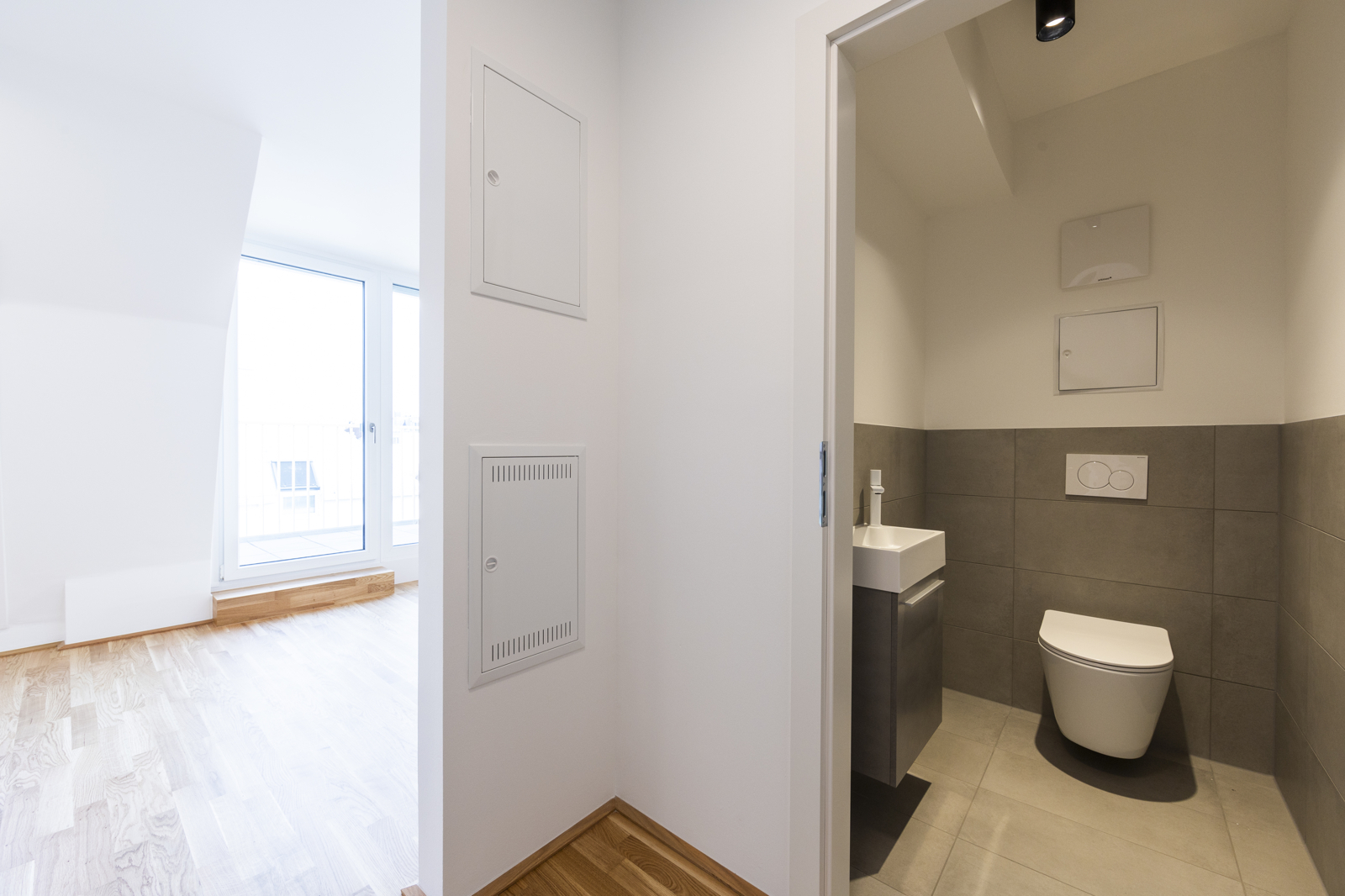 Die Wohnungen verfügen über große, bodentiefe Fenster, die viel natürliches Licht hereinlassen und für eine angenehme Wohnatmosphäre sorgen. Hochwertige Materialien wie Parkettböden in den Wohnbereichen und moderne Fliesen in den Badezimmern unterstreichen den gehobenen Anspruch des Objekts. Je nach Stockwerk bieten die Wohnungen eine wunderbare Aussicht auf die grüne Umgebung oder die beeindruckende Skyline der Donau City.