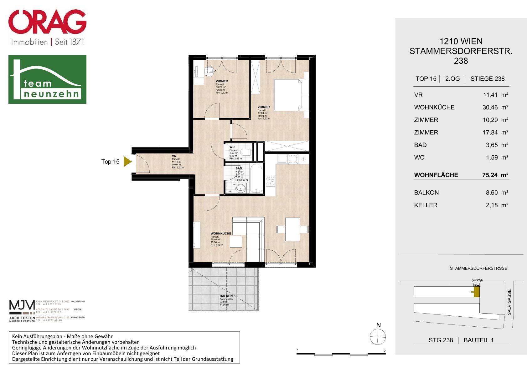 Die Umgebung zeichnet sich durch eine hervorragende Infrastruktur mit Schulen, Geschäften und medizinischen Einrichtungen aus. Gleichzeitig bietet die Nähe zum Marchfeldkanal und den Heurigen in Stammersdorf reichlich Gelegenheit zur Erholung im Grünen. Dieser Standort vereint Urbanität mit hoher Lebensqualität.