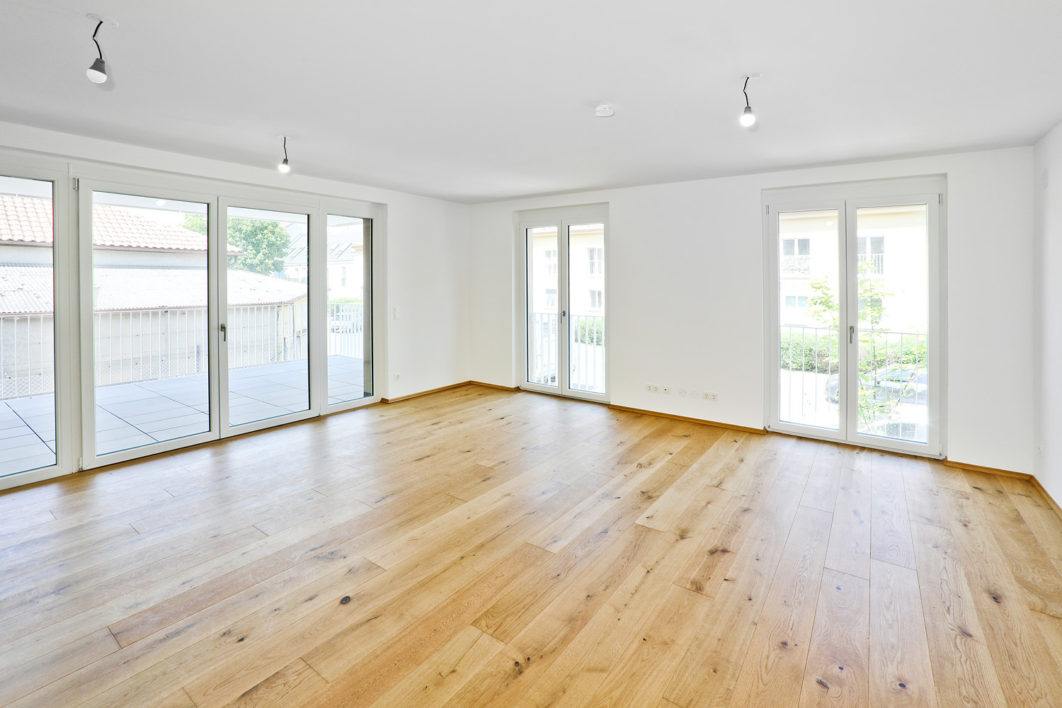 Die Wohnungen bieten unterschiedliche Grundrisse und Wohnflächen und eignen sich so sowohl für Singles und Paare als auch für Familien. Besonderer Wert wurde auf Funktionalität und modernes Design gelegt: Eichenparkettböden von Weitzer, Fliesen von xclusiva ceramica in den Nassräumen, hochwertige Fenster von IBM Schober sowie Türen von DANA fügen sich zu einem stimmigen Gesamtbild. Ergänzt wird die Ausstattung durch Fußbodenheizung, dreifach verglaste Fenster und – in den Dachgeschoßen – Sonnenschutz und Klimavorbereitung.