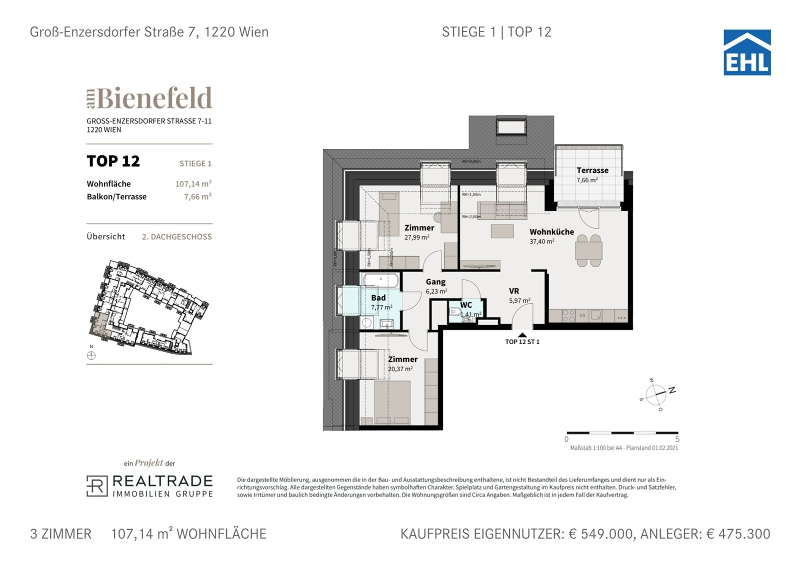 Willkommen am Bienefeld – in der Groß-Enzersdorfer Straße 7–11 im 22. Wiener Gemeindebezirk entsteht eine moderne Wohnhausanlage mit 83 bereits bezugsfertigen Eigentumswohnungen. Jede Einheit überzeugt durch großzügige Freiflächen wie Balkone, Terrassen oder Eigengärten, die zum Verweilen im Freien einladen. Die klar strukturierte, zeitlose Architektur fügt sich harmonisch in die Umgebung ein und vermittelt gemeinsam mit der Auswahl hochwertiger, natürlicher Materialien ein Gefühl von Ruhe und Geborgenheit.