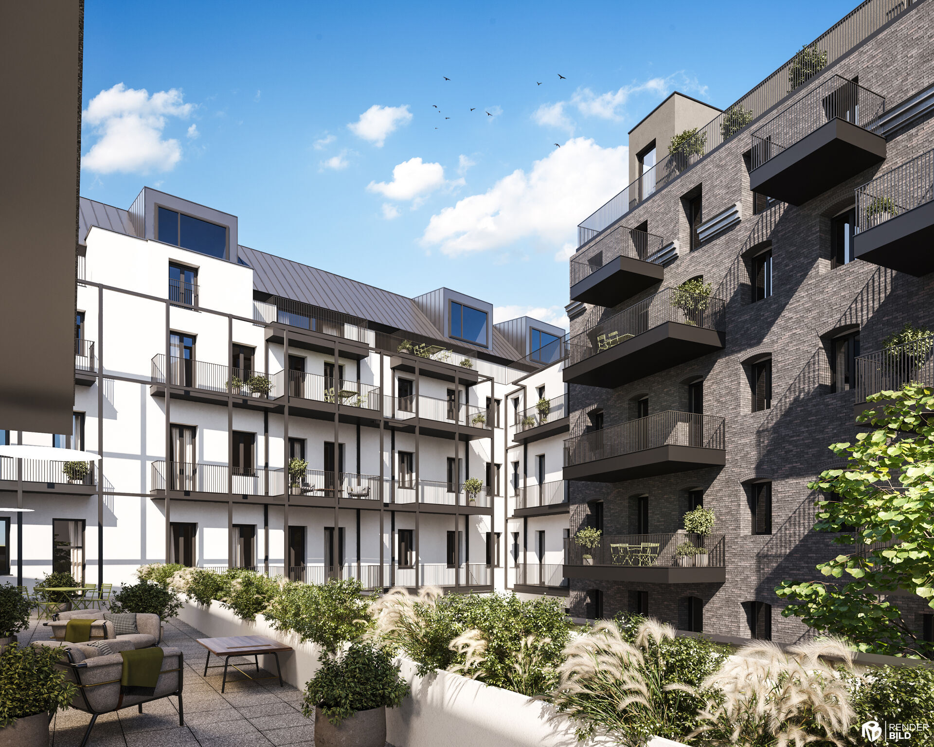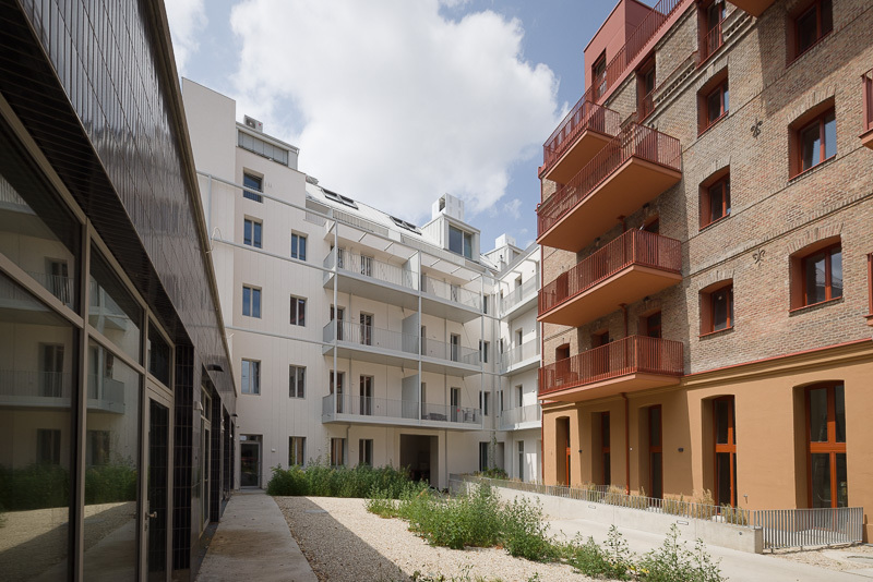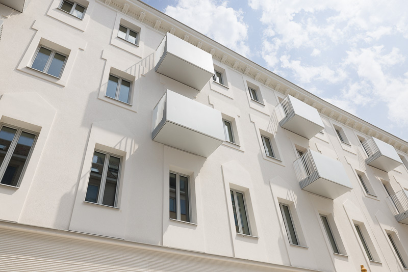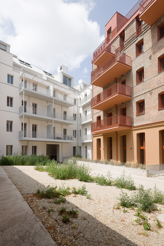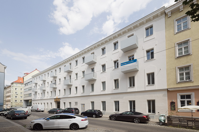 Die Liegenschaft gliedert sich in vier architektonisch unterschiedliche Gebäudetrakte: den sorgfältig revitalisierten Altbestand mit Straßentrakt und zwei Stiegen, einen charmanten Hoftrakt mit klassischer Backsteinfassade sowie einen modernen Neubautrakt im Innenhof. Diese Vielfalt schafft ein hohes Maß an Individualität und architektonischem Reiz.