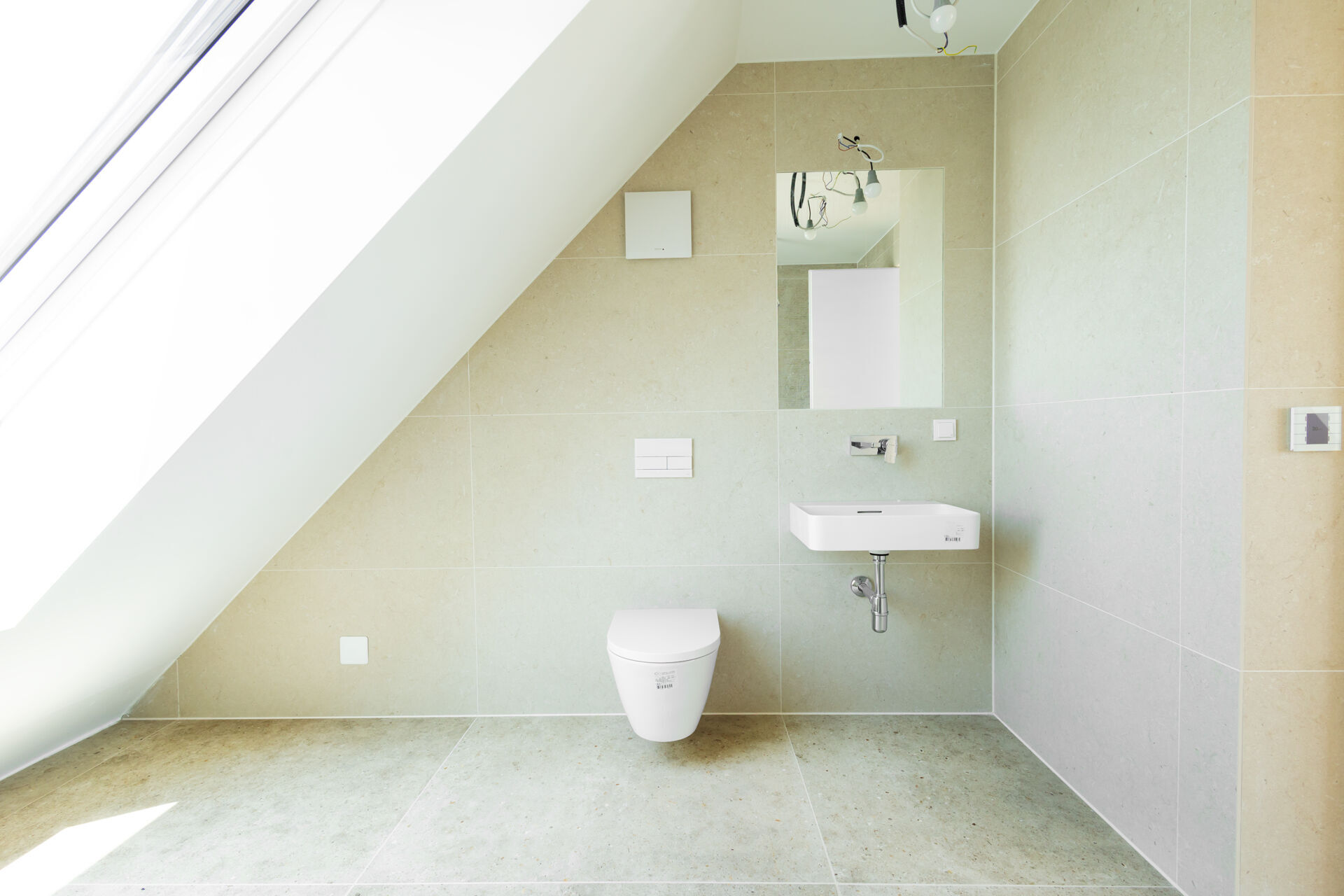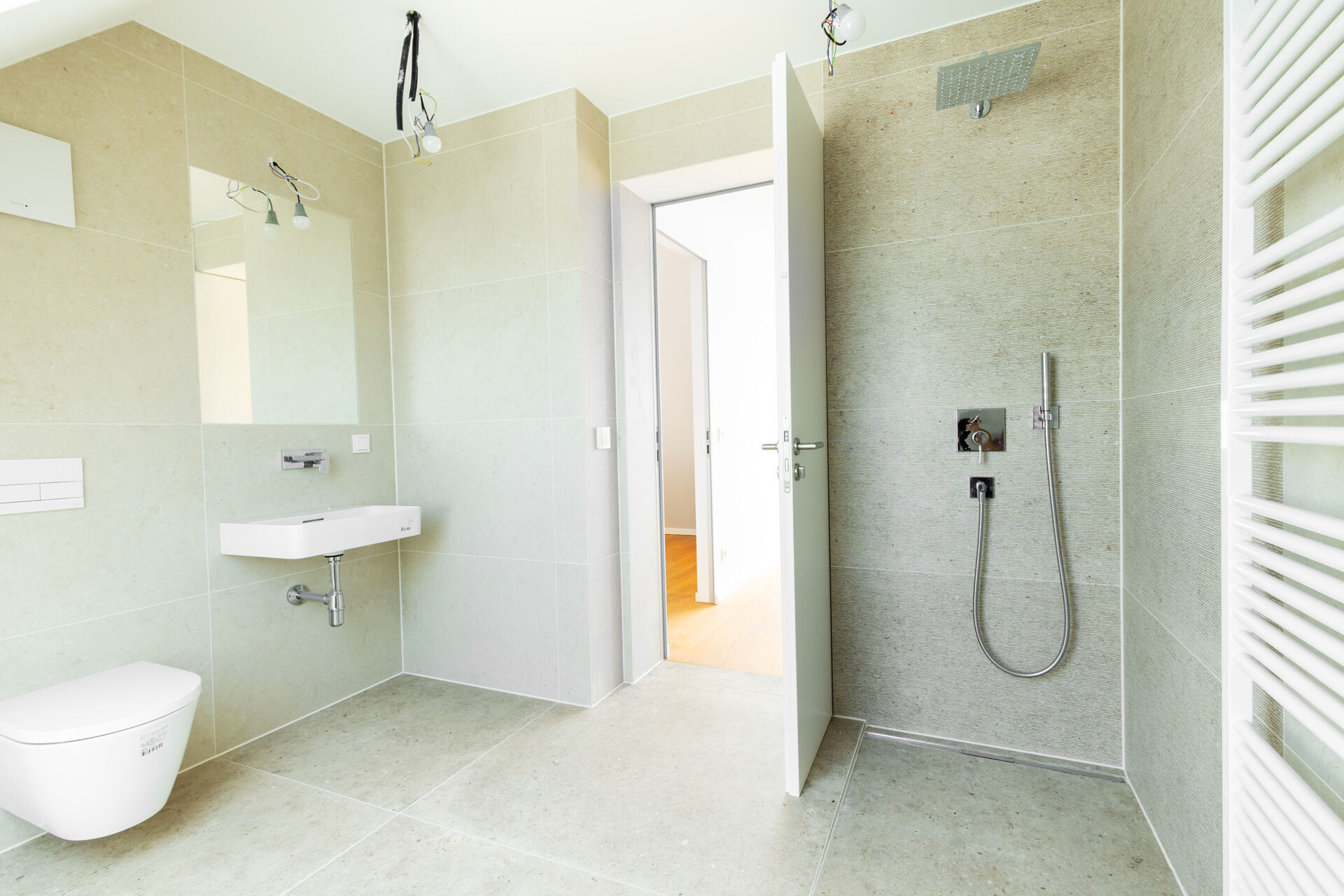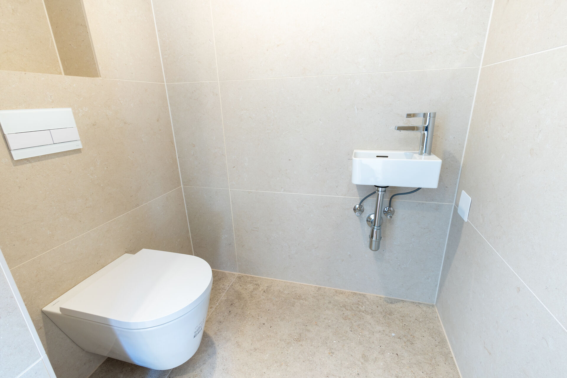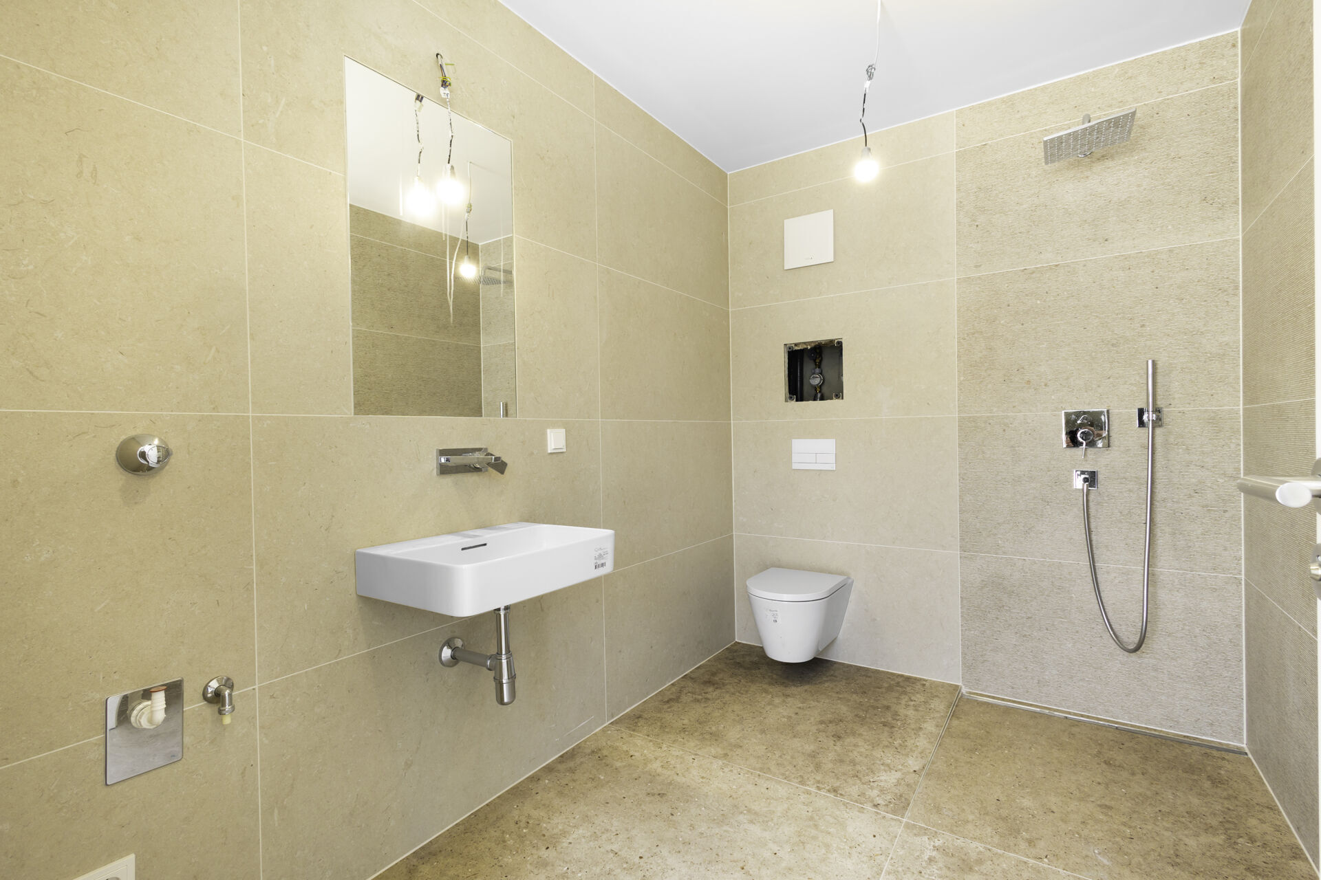 - Elegantes Feinsteinzeug in den Bädern