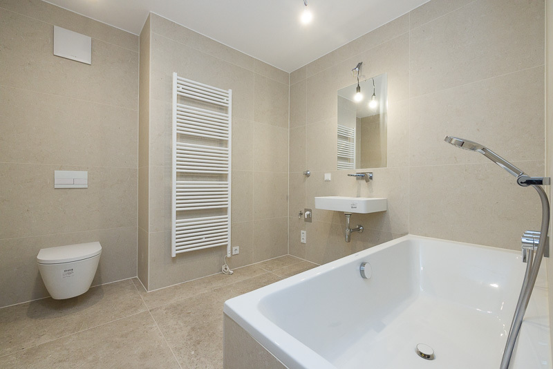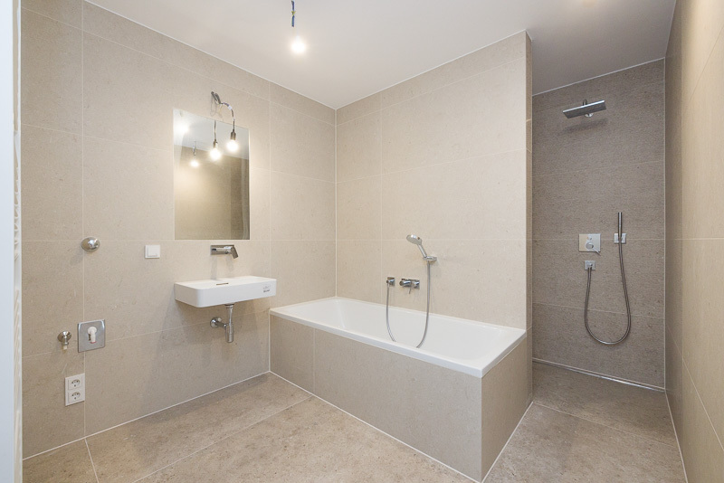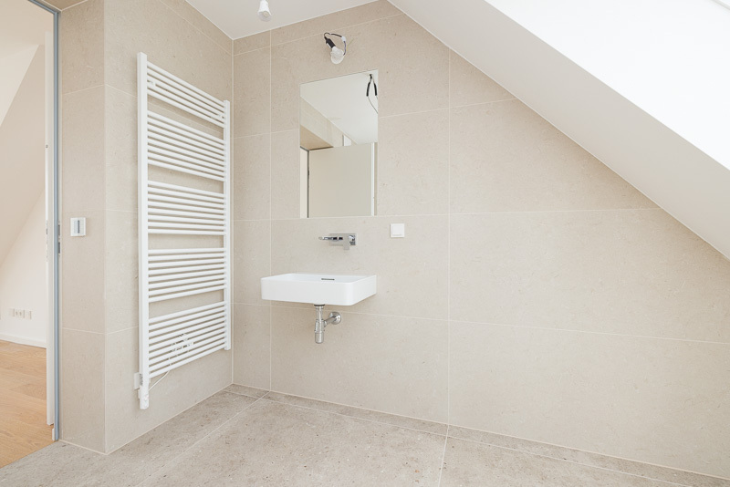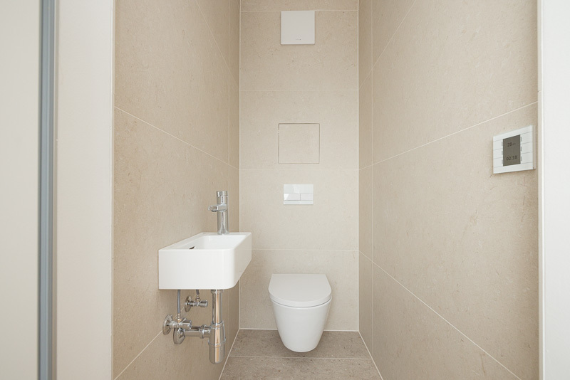 - Elegantes Feinsteinzeug in den Bädern