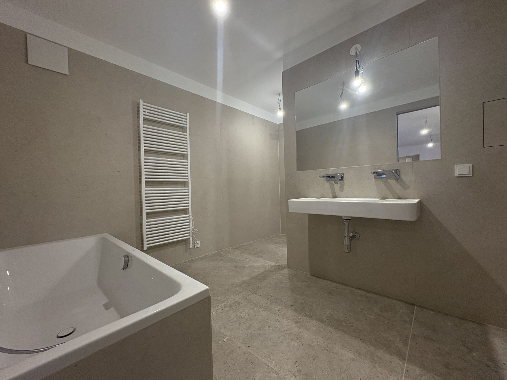 - Elegantes Feinsteinzeug in den Bädern