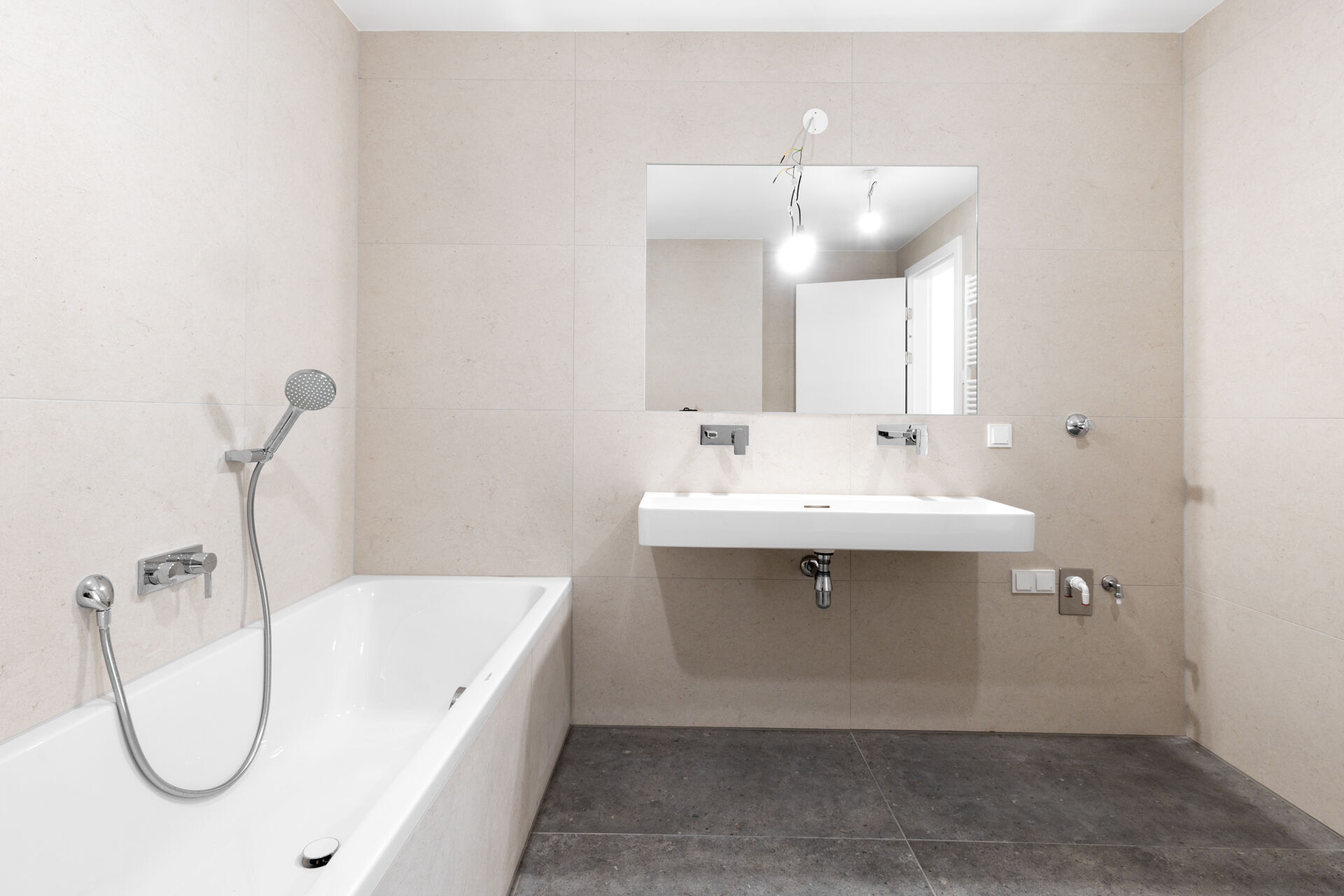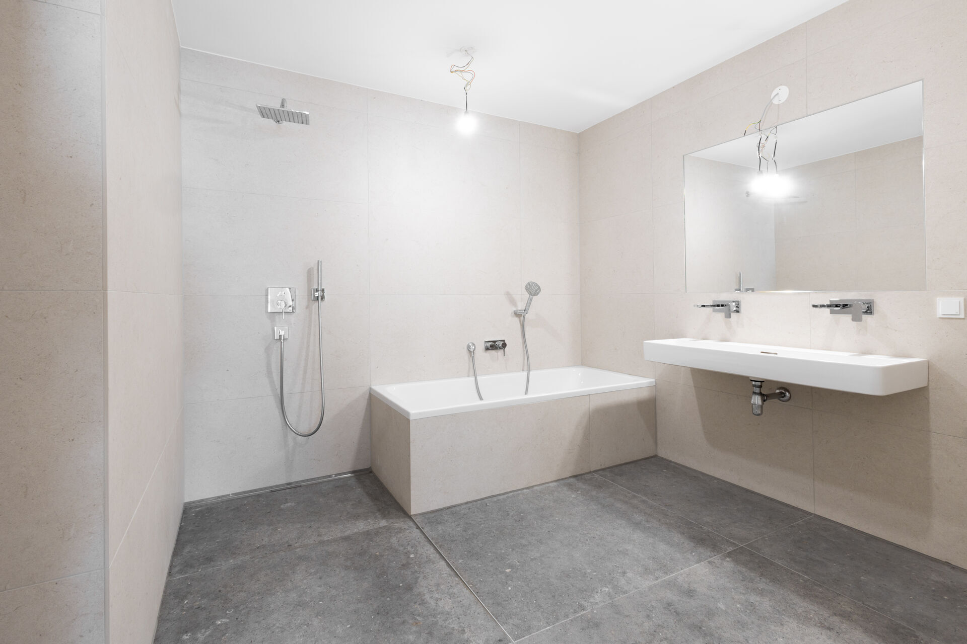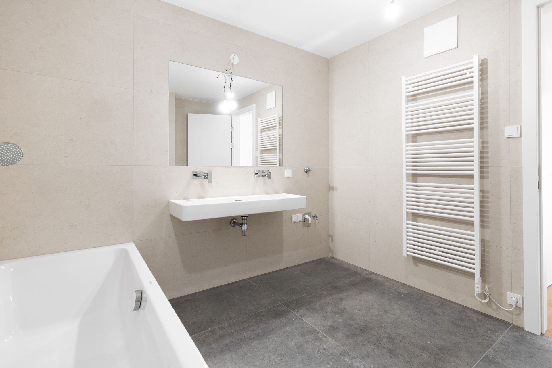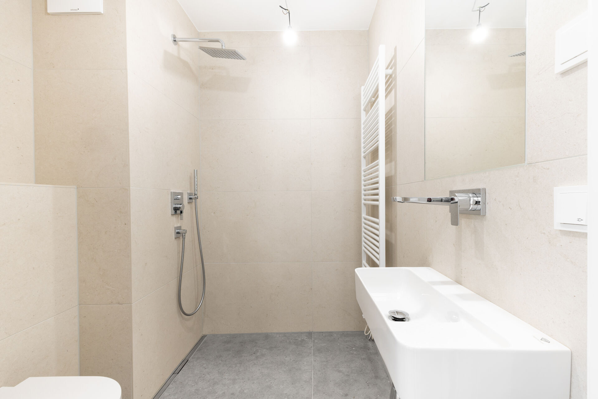 - Elegantes Feinsteinzeug in den Bädern