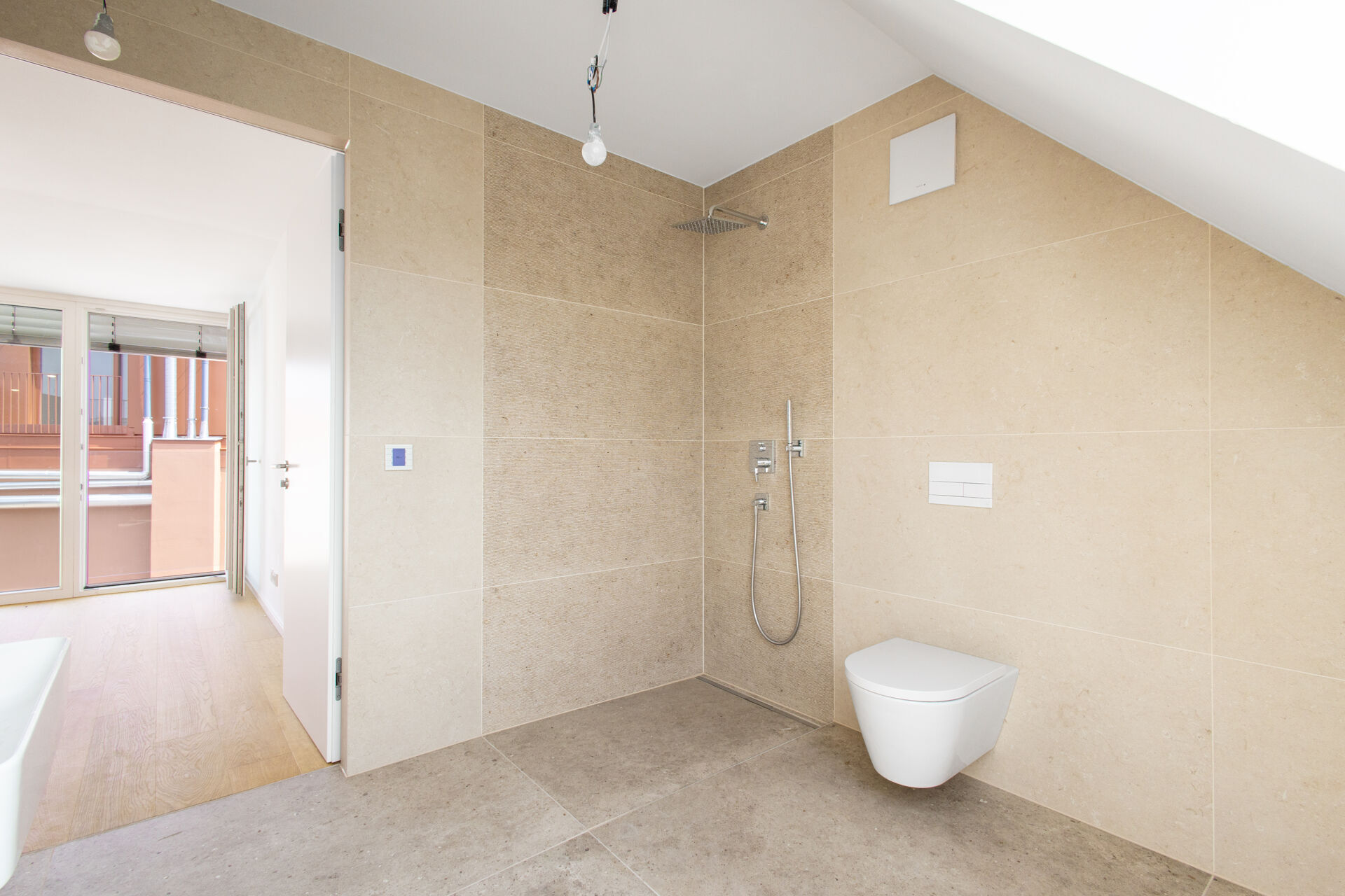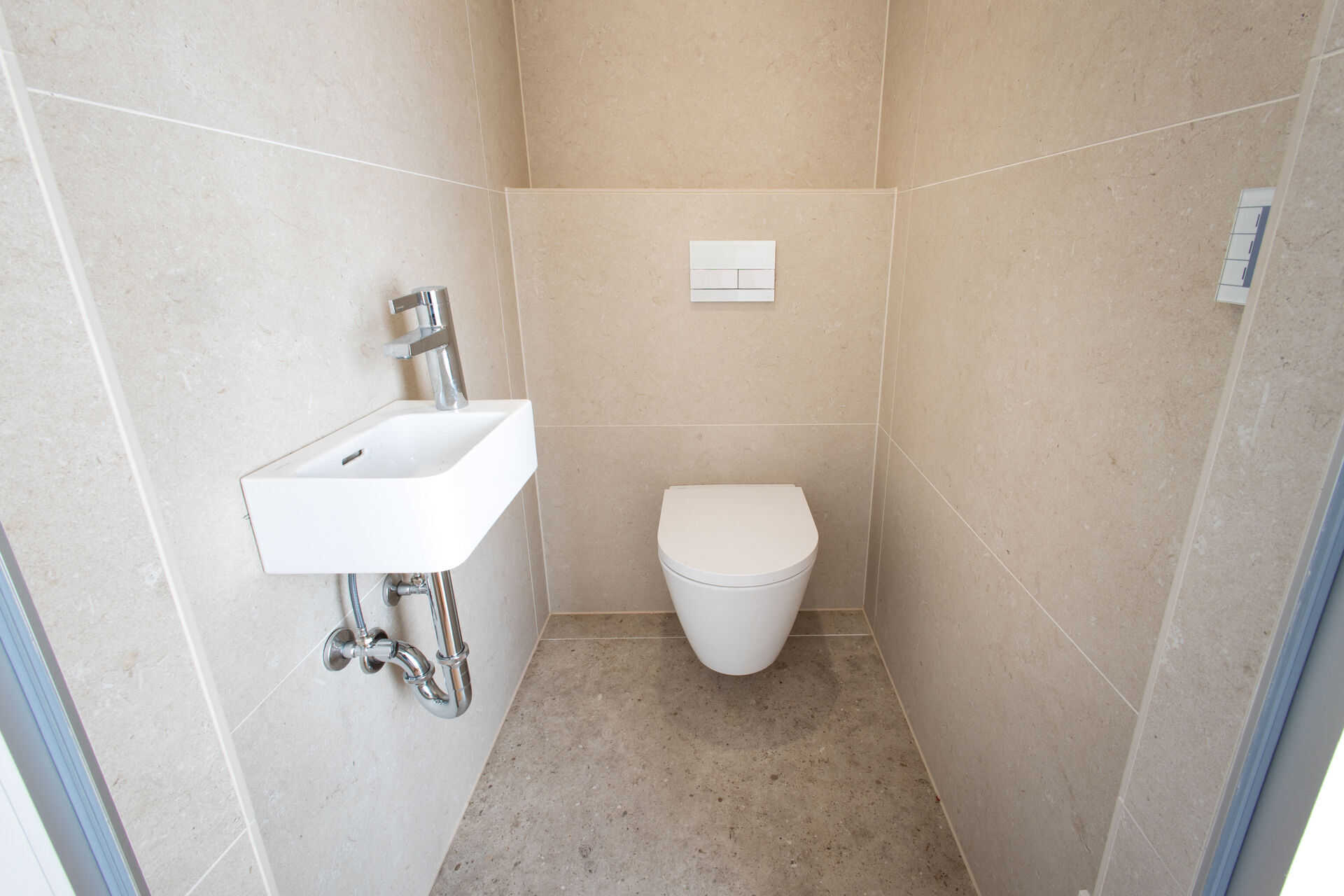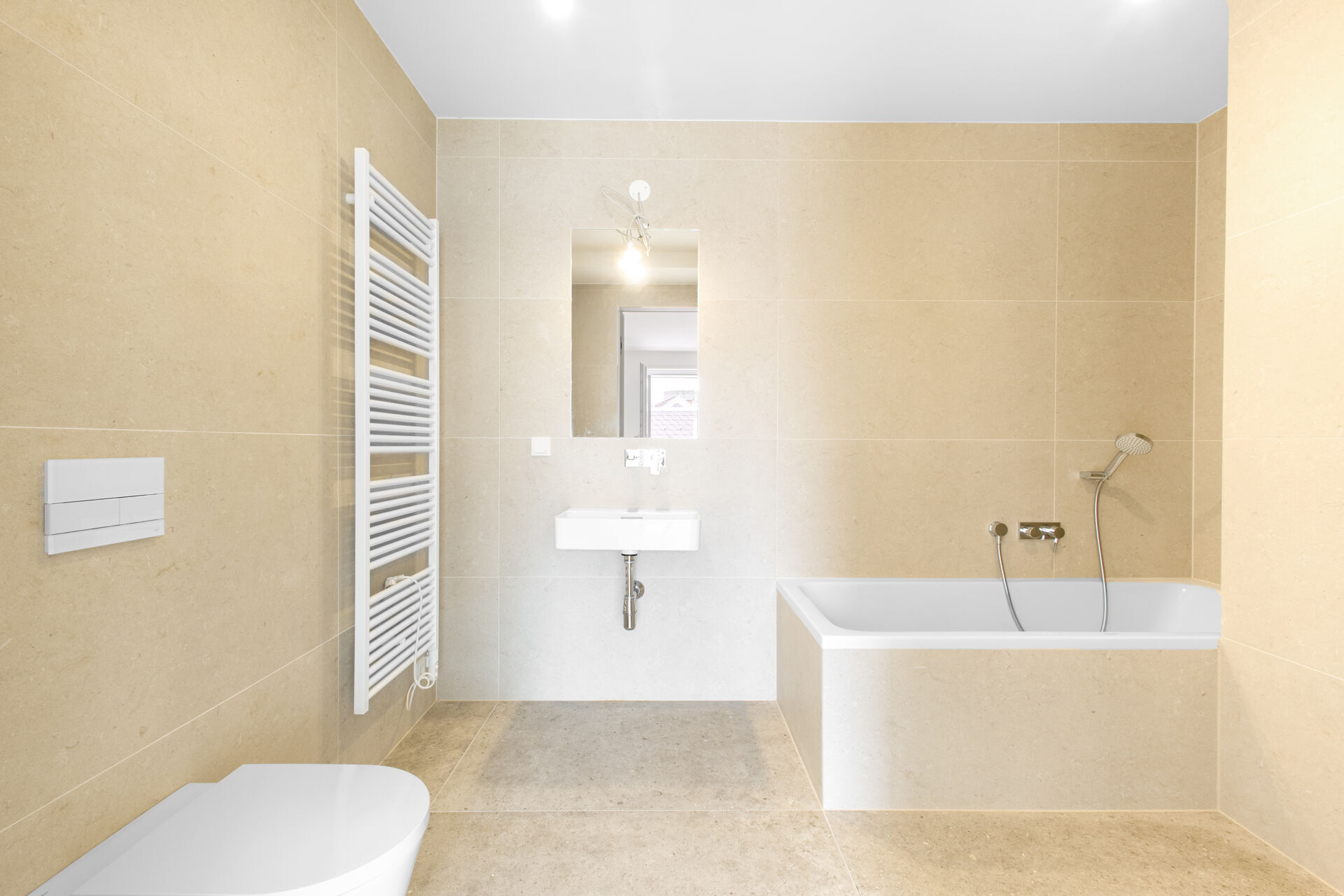- Elegantes Feinsteinzeug in den Bädern