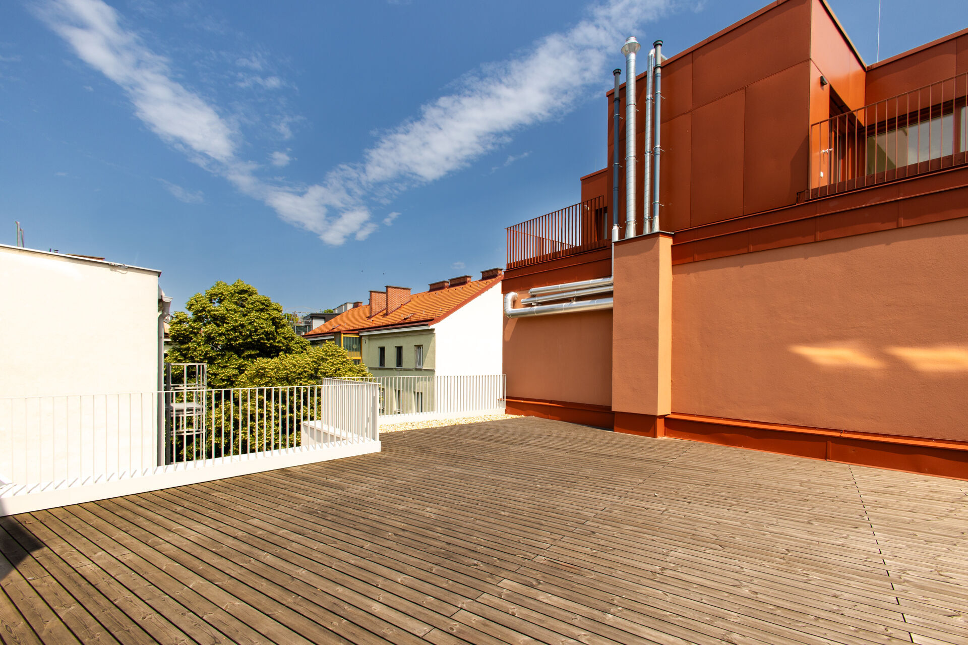 Die Liegenschaft gliedert sich in vier architektonisch unterschiedliche Gebäudetrakte: den sorgfältig revitalisierten Altbestand mit Straßentrakt und zwei Stiegen, einen charmanten Hoftrakt mit klassischer Backsteinfassade sowie einen modernen Neubautrakt im Innenhof. Diese Vielfalt schafft ein hohes Maß an Individualität und architektonischem Reiz.