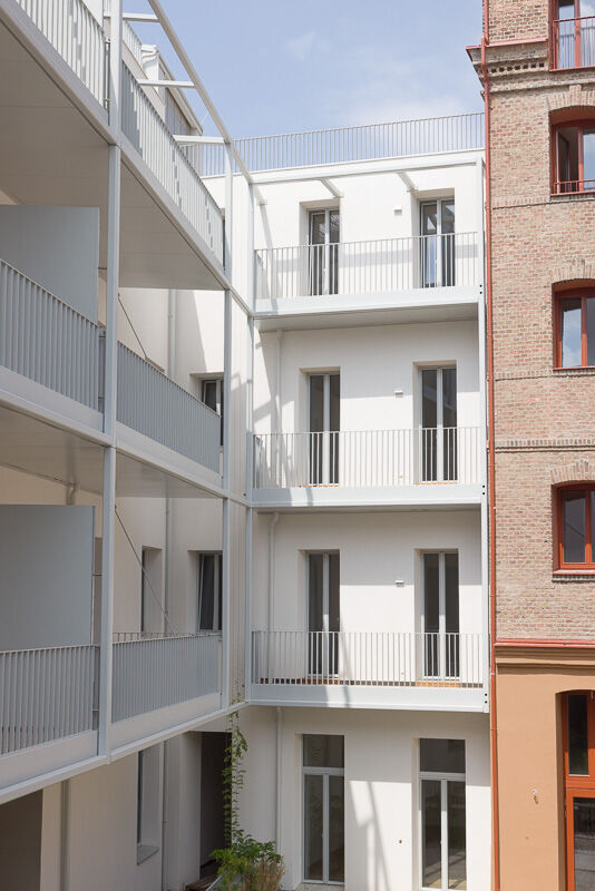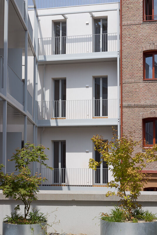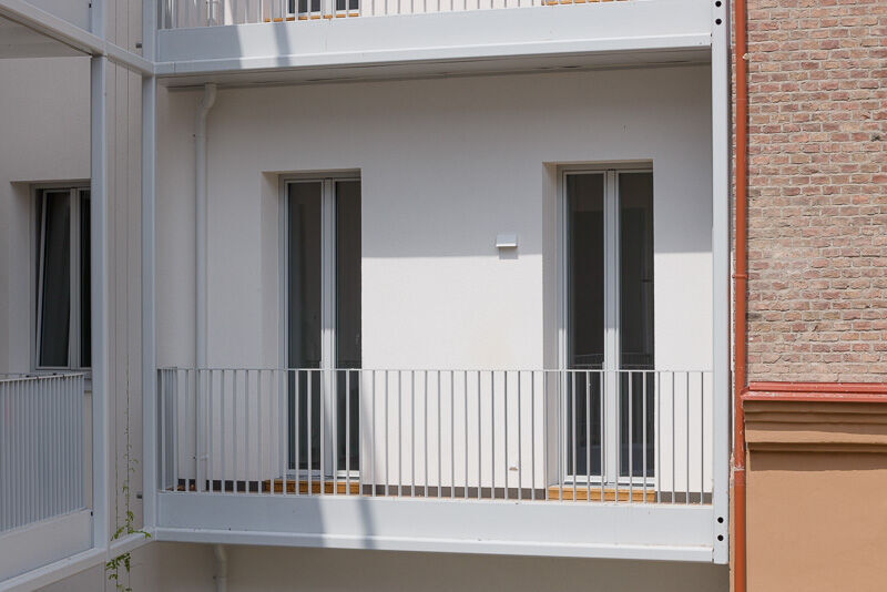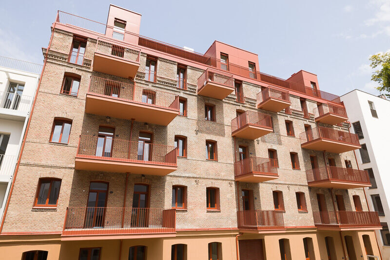 Die Liegenschaft gliedert sich in vier architektonisch unterschiedliche Gebäudetrakte: den sorgfältig revitalisierten Altbestand mit Straßentrakt und zwei Stiegen, einen charmanten Hoftrakt mit klassischer Backsteinfassade sowie einen modernen Neubautrakt im Innenhof. Diese Vielfalt schafft ein hohes Maß an Individualität und architektonischem Reiz.