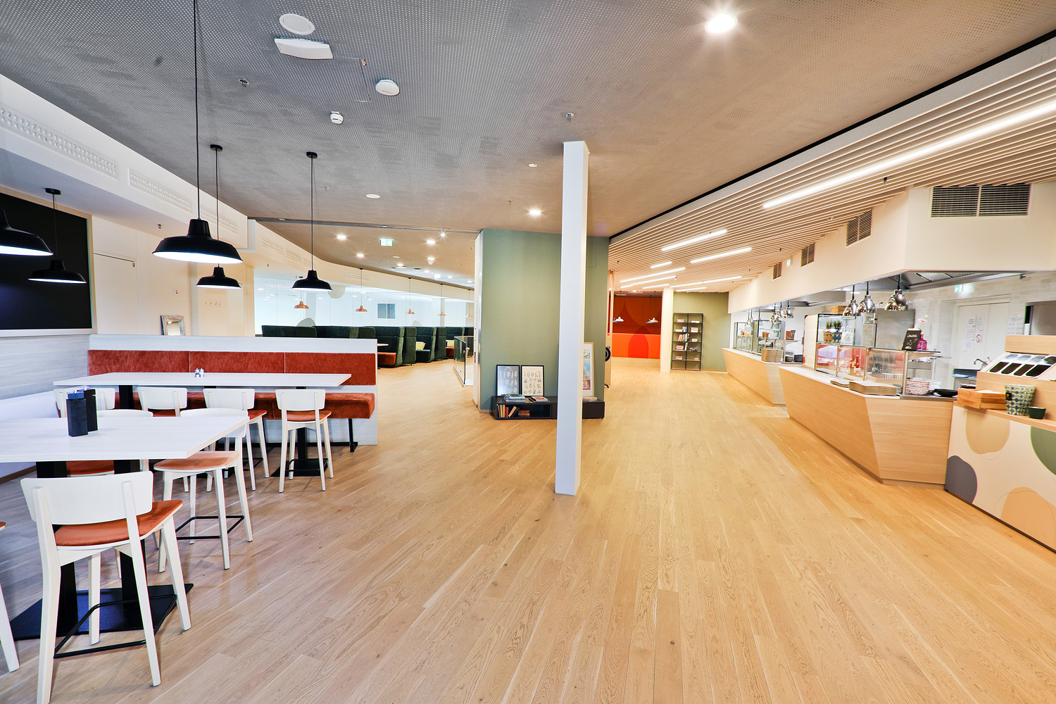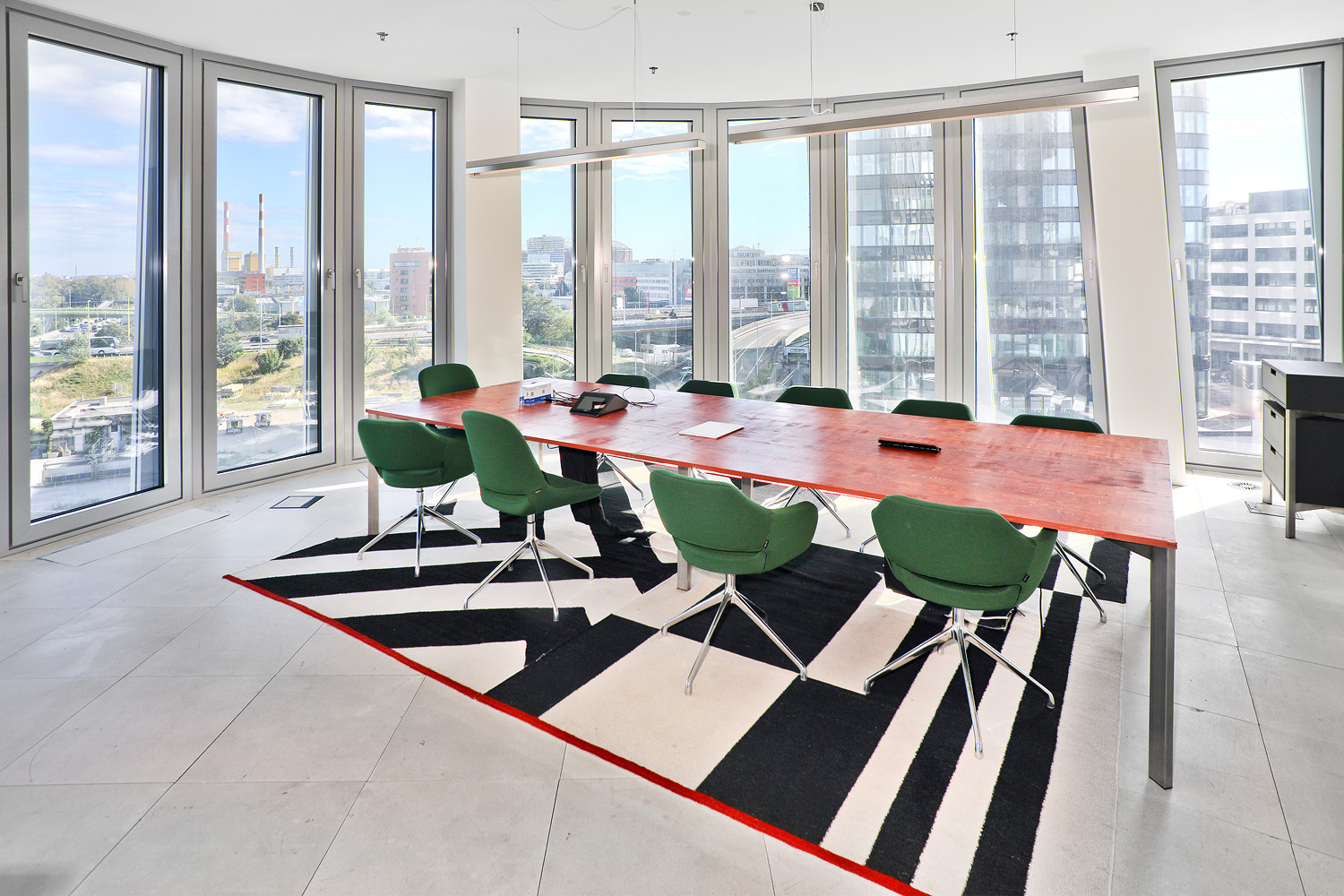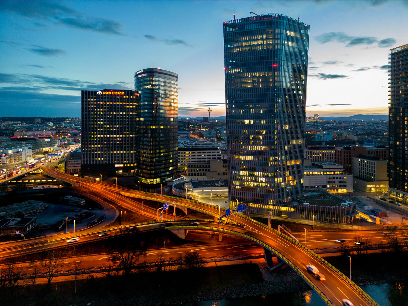 Direkt am Donaukanal wenige Schritte von U3-Station Erdberg entfernt. Im Umfeld gibt es div. Lokale/Restaurants und Kantinen. Ein Supermarkt, Drogeriemarkt und Fitnessstudio befinden sich im Nachbargebäude.