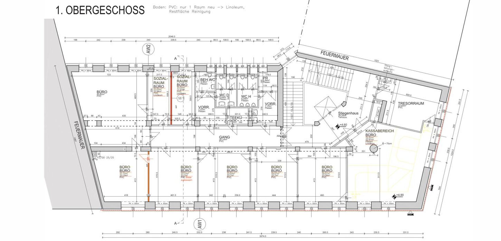 Vorhandene Büroflächen: