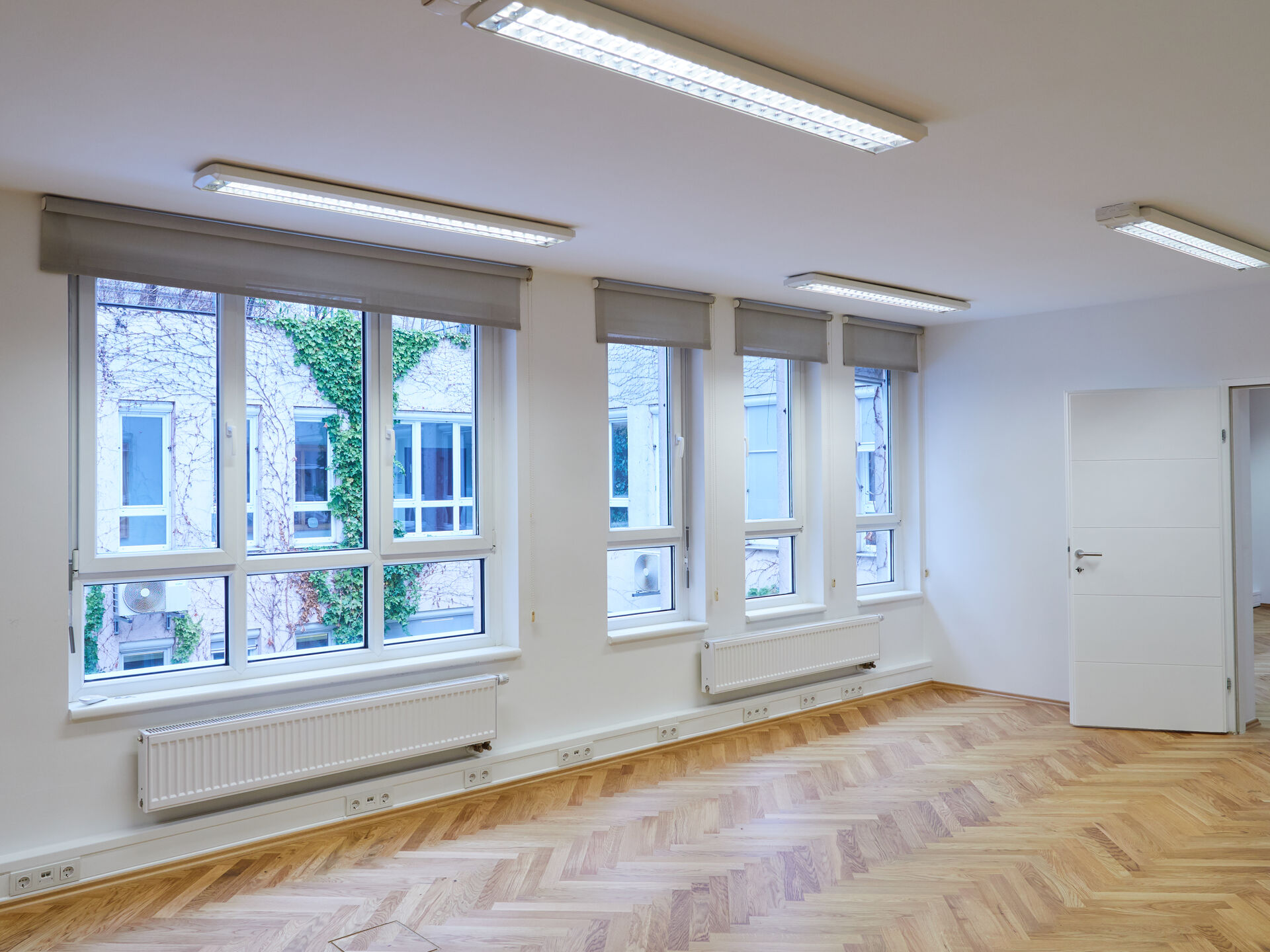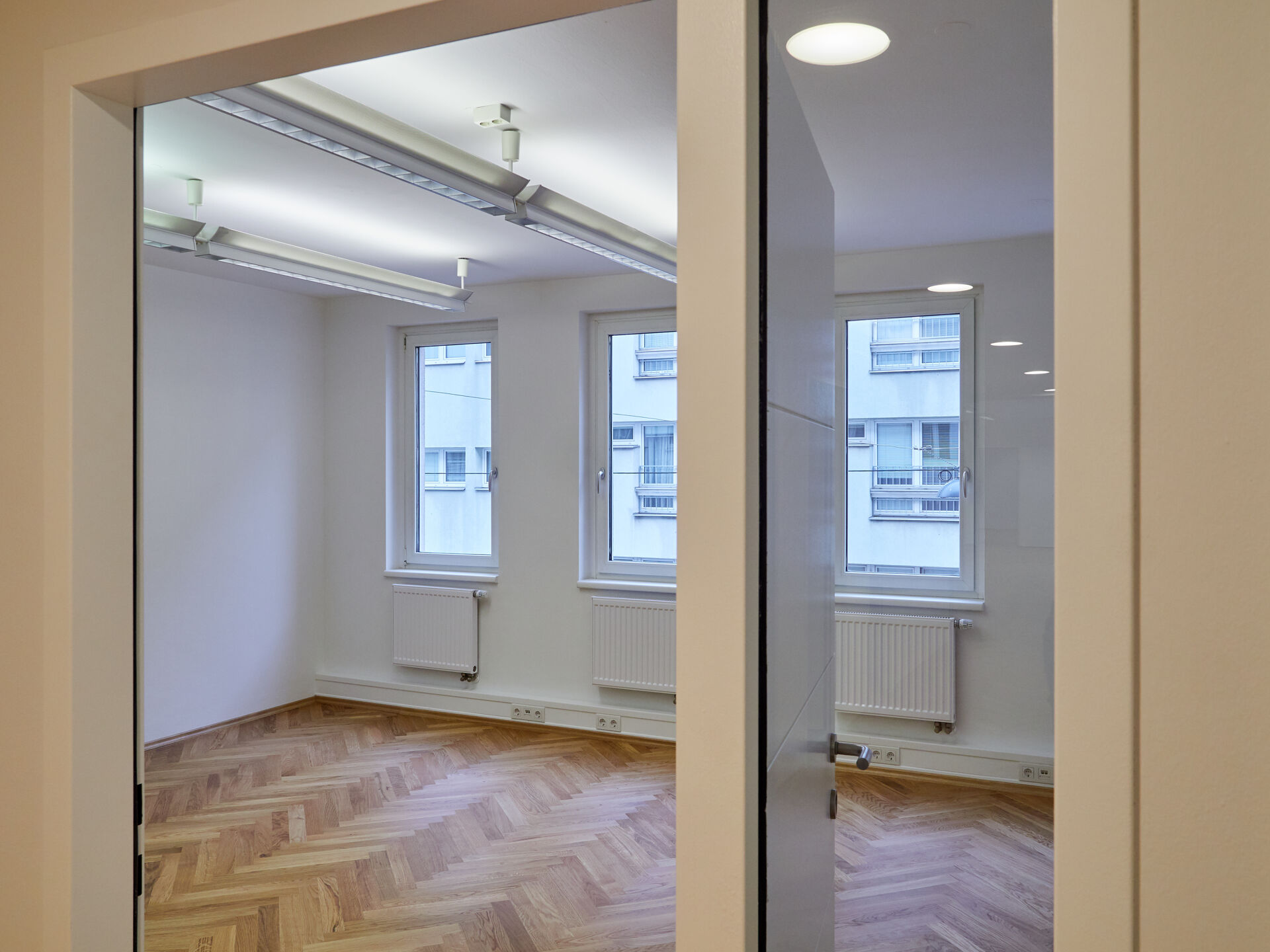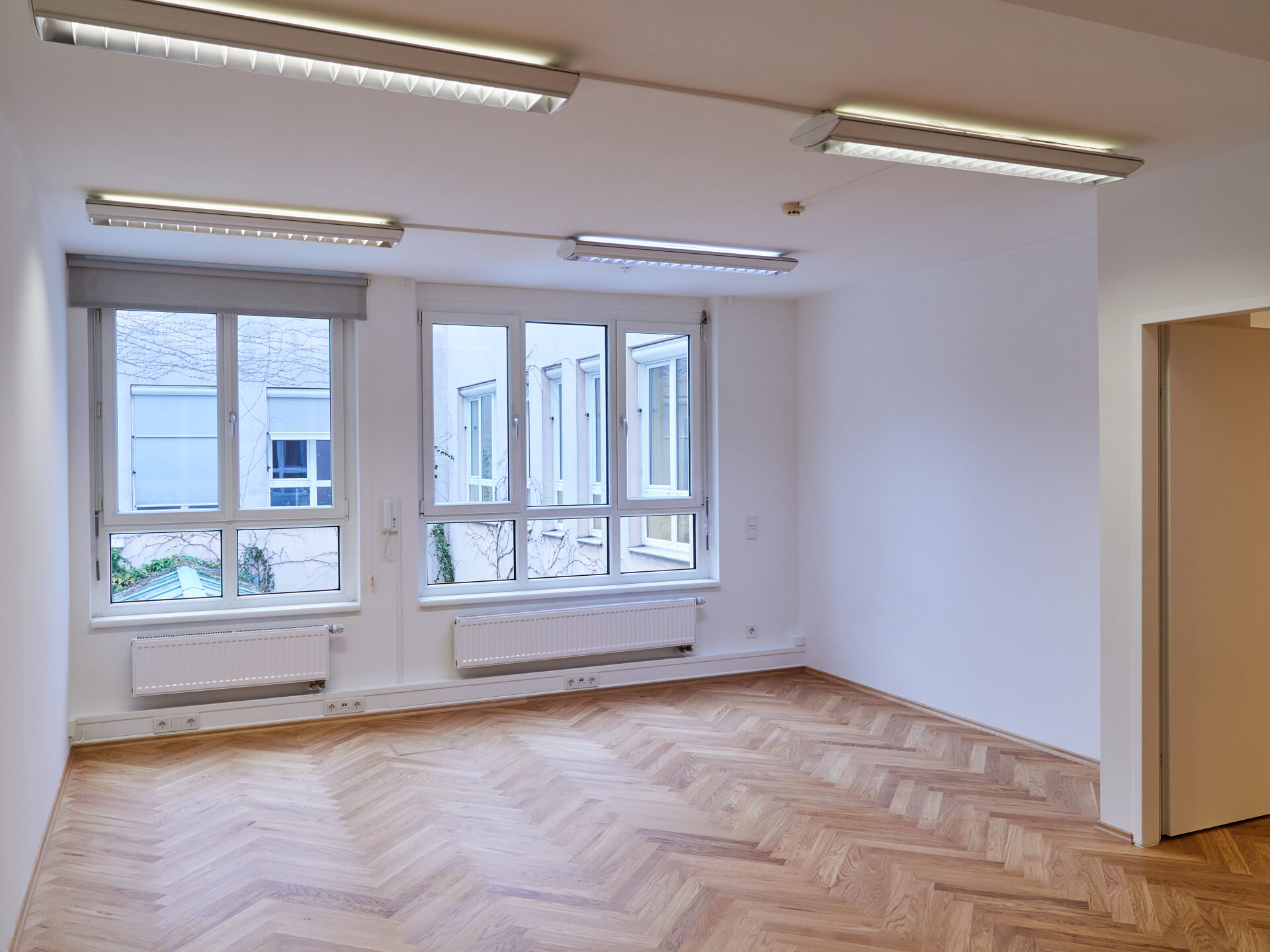 Ergänzt wird das Raumangebot durch einen Archiv-/Kopierraum, einen Serverraum, eine voll ausgestattete Küche, getrennte Sanitäreinheiten sowie einen inkludierten Archivraum im Kellergeschoss (ca. 26,84 m²).