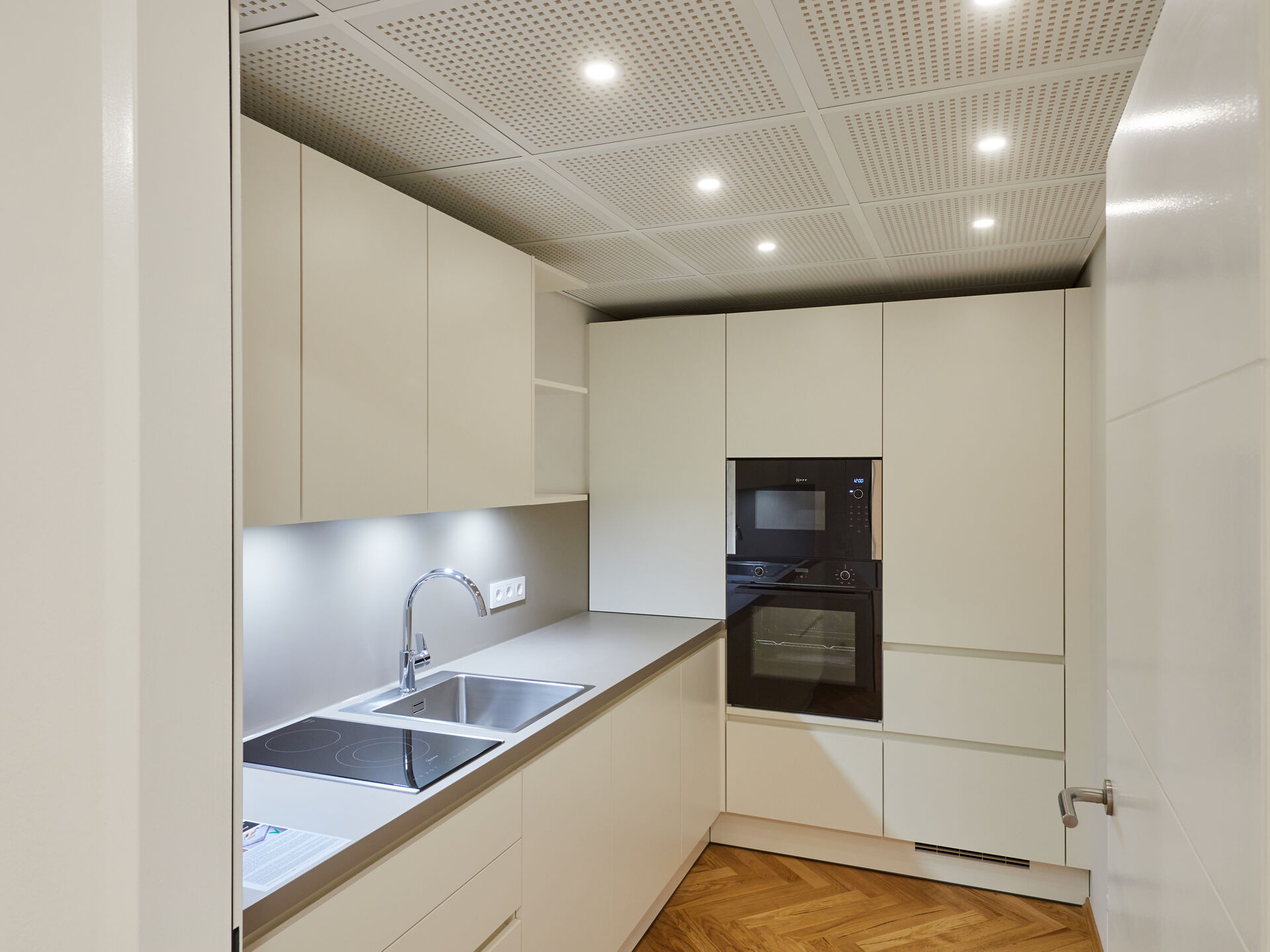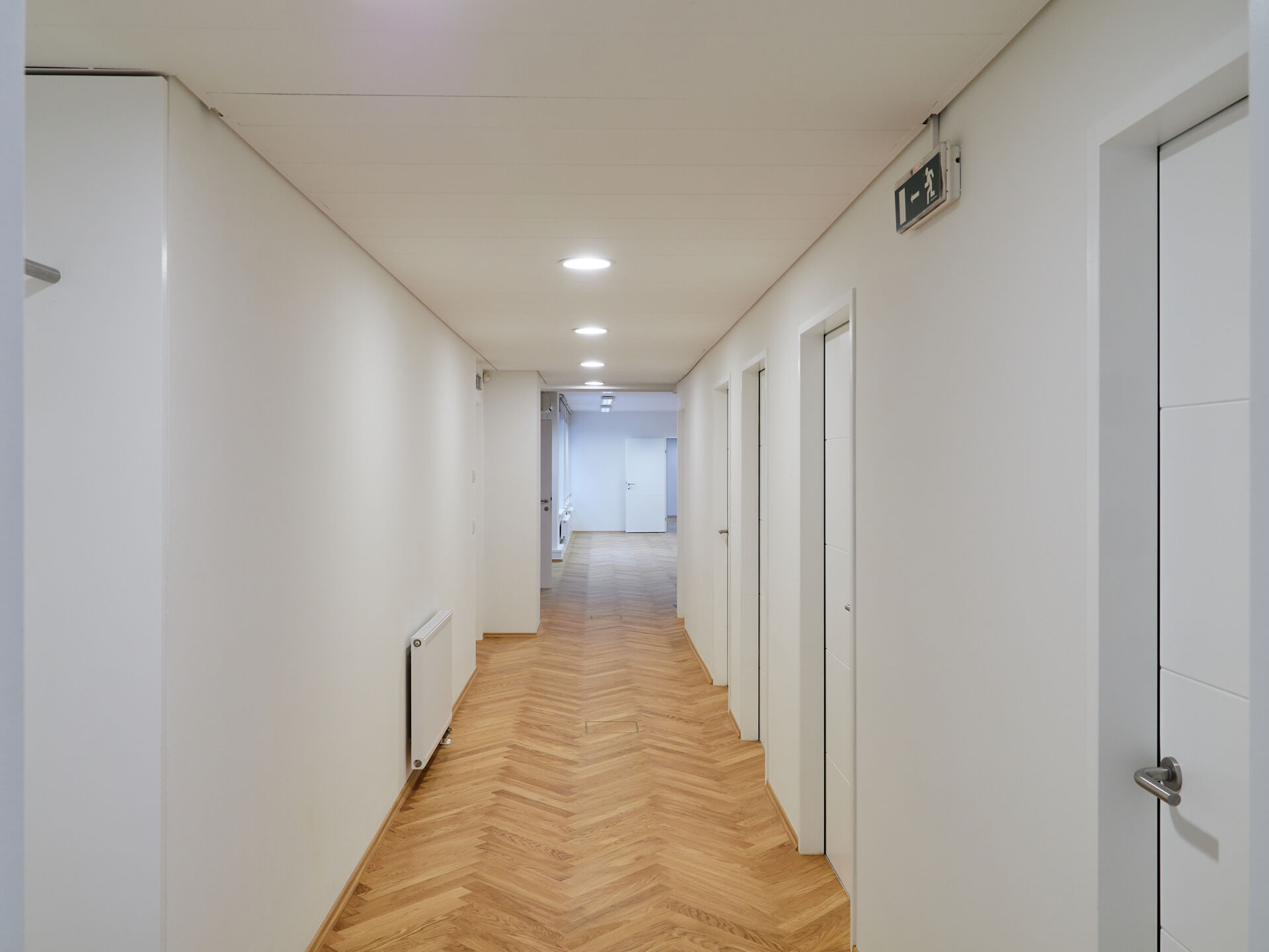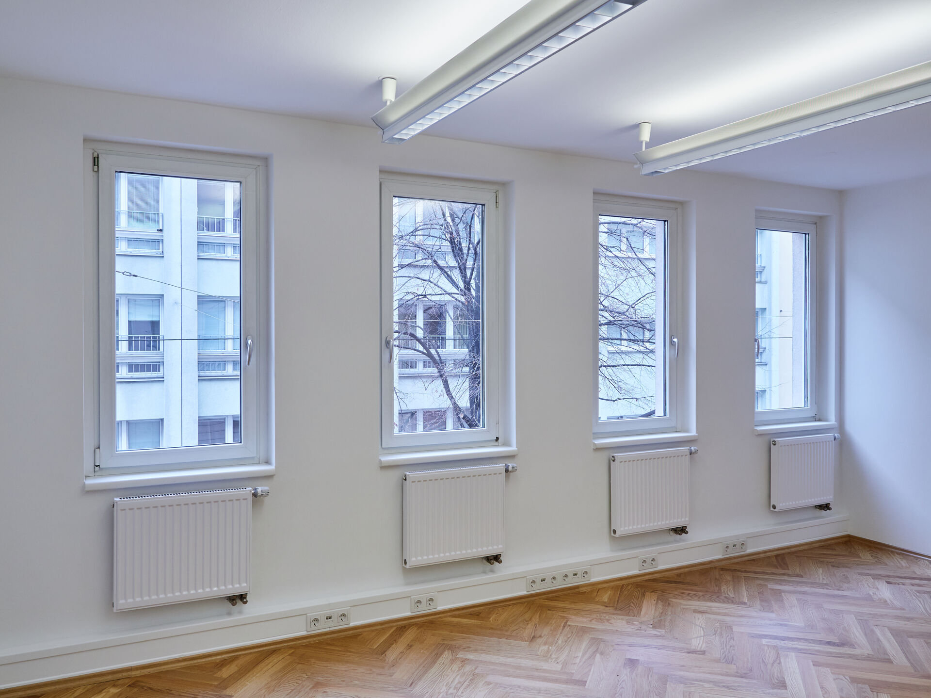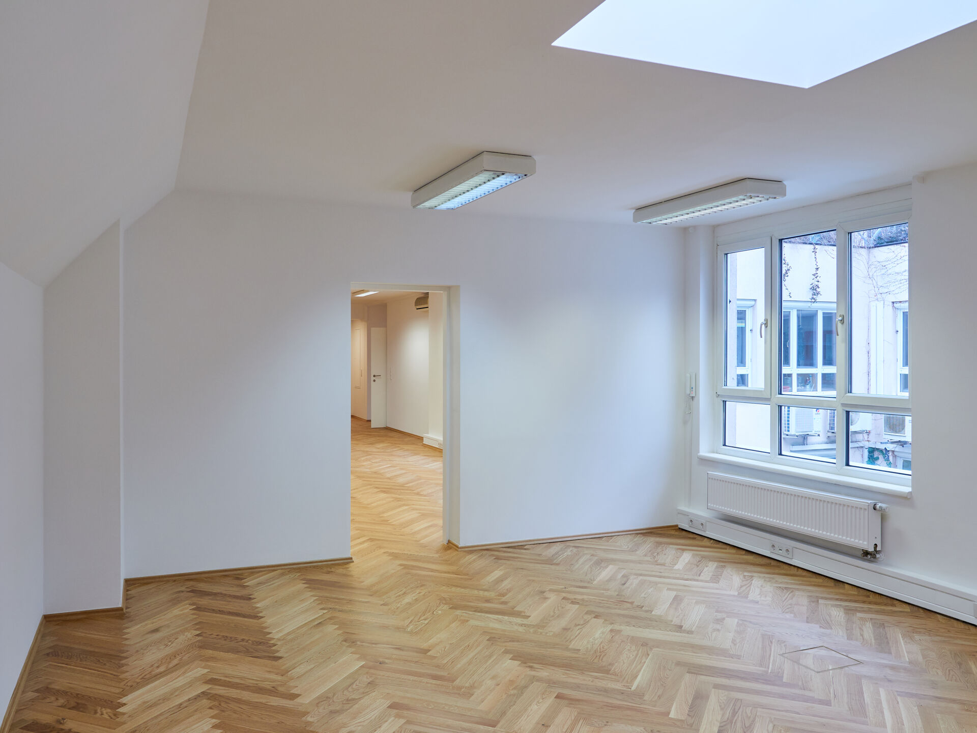 Ergänzt wird das Raumangebot durch einen Archiv-/Kopierraum, einen Serverraum, eine voll ausgestattete Küche, getrennte Sanitäreinheiten sowie einen inkludierten Archivraum im Kellergeschoss (ca. 26,84 m²).