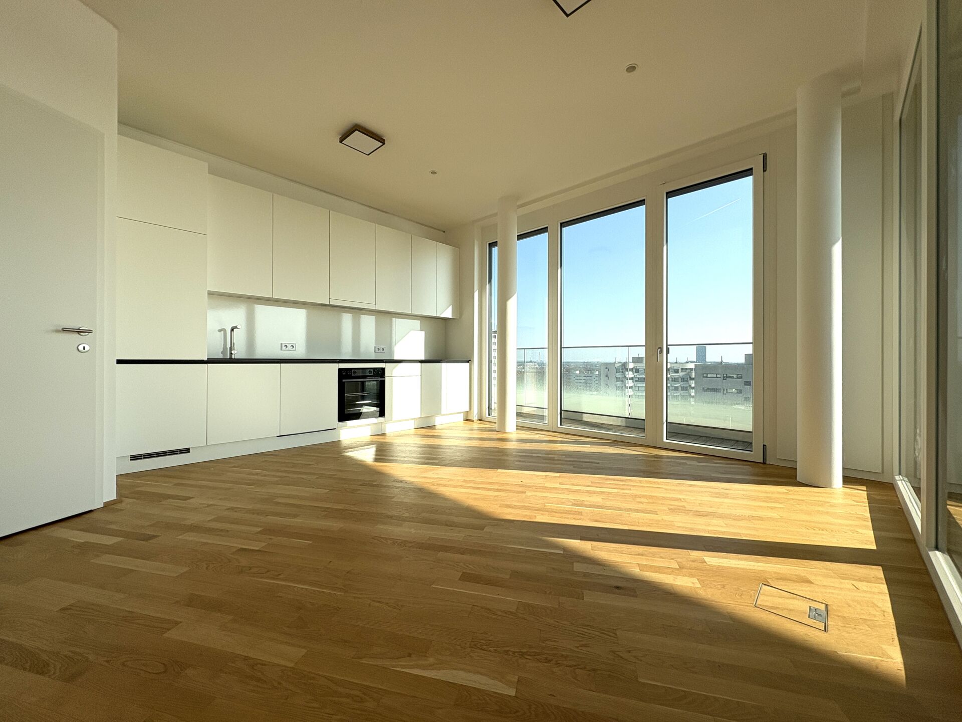 DANUBEVIEW umfasst insgesamt 159 Mietwohnungen mit Größen zwischen 30 m² und 150 m², verteilt auf 1 bis 4 Zimmer. Großzügige Grundrisse und lichtdurchflutete Räume mit weitläufigen Fensterfronten eröffnen atemberaubende Ausblicke auf die Donau und die City.