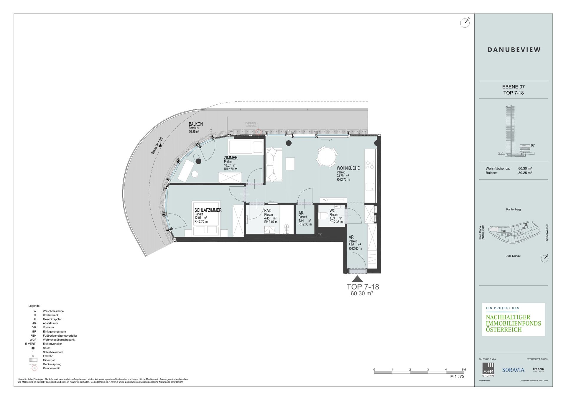 DANUBEVIEW umfasst insgesamt 159 Mietwohnungen mit Größen zwischen 30 m² und 150 m², verteilt auf 1 bis 4 Zimmer. Großzügige Grundrisse und lichtdurchflutete Räume mit weitläufigen Fensterfronten eröffnen atemberaubende Ausblicke auf die Donau und die City.