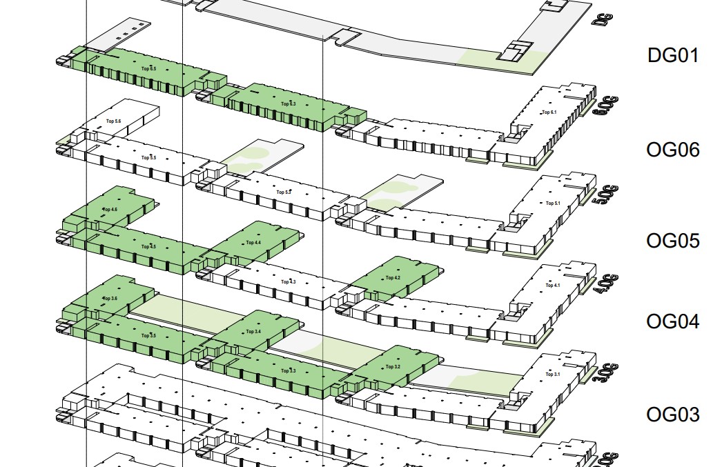 - exklusive Balkone für jede Mieteinheit, Dachterrasse, Innenhof