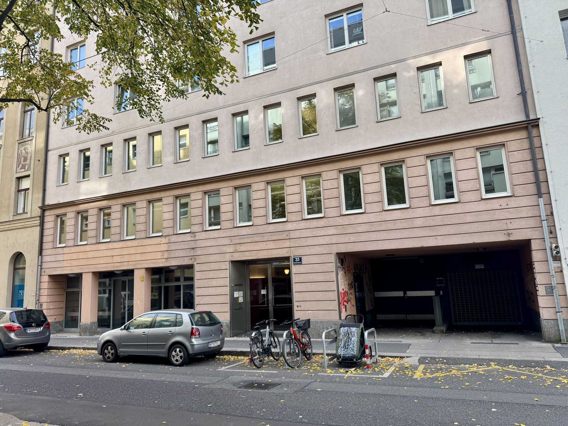 Das Gebäude liegt wenige Meter von der Schönbrunner Straße bzw. dem Schlossquadrat entfernt.