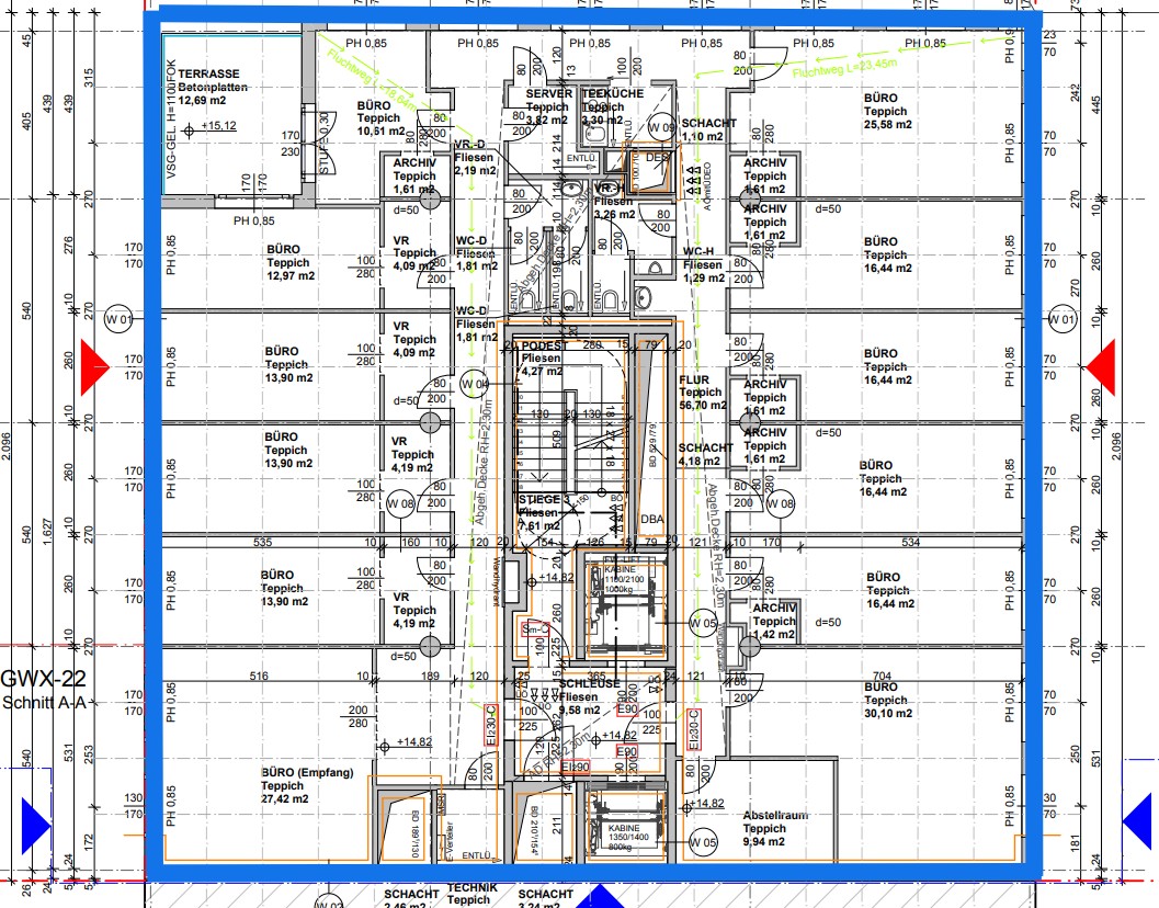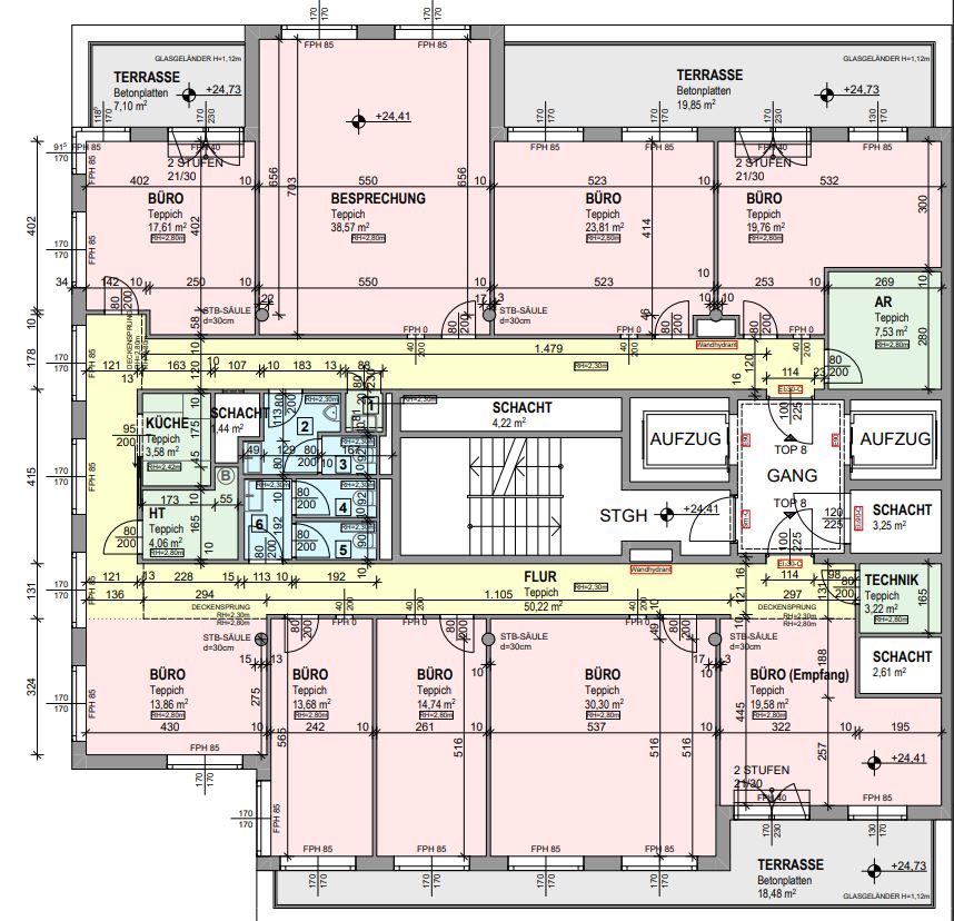 BK Büro: EUR 4,60/m² (inkl. Heizung)