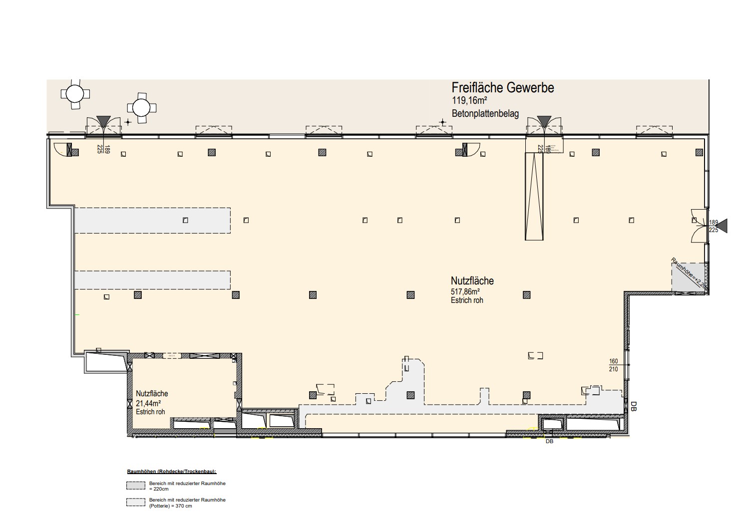 - Raumhöhe: Lichte Raumhöhe bis zu 4,8 m