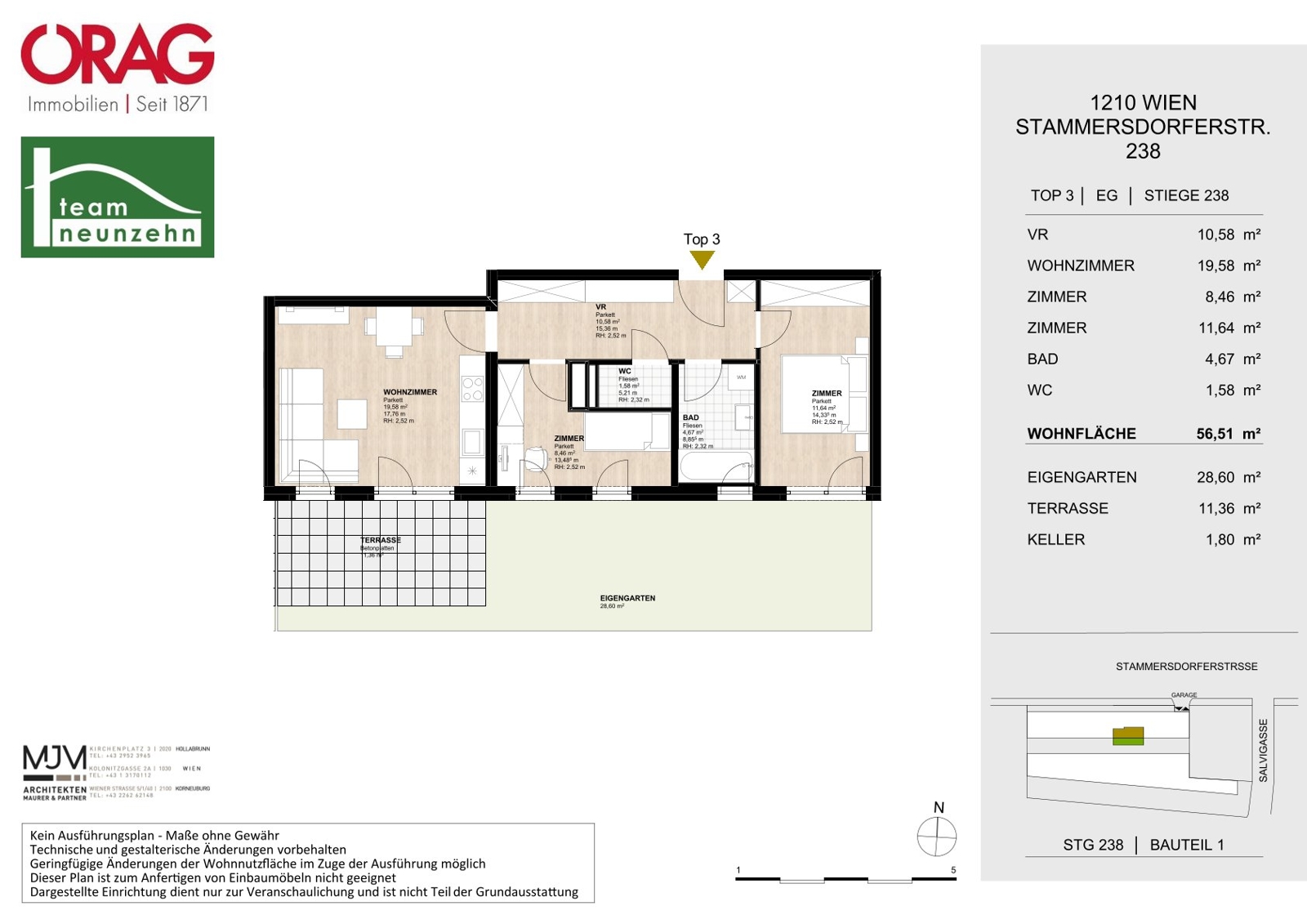 Die Umgebung zeichnet sich durch eine hervorragende Infrastruktur mit Schulen, Geschäften und medizinischen Einrichtungen aus. Gleichzeitig bietet die Nähe zum Marchfeldkanal und den Heurigen in Stammersdorf reichlich Gelegenheit zur Erholung im Grünen. Dieser Standort vereint Urbanität mit hoher Lebensqualität.
