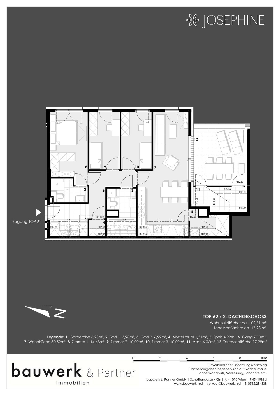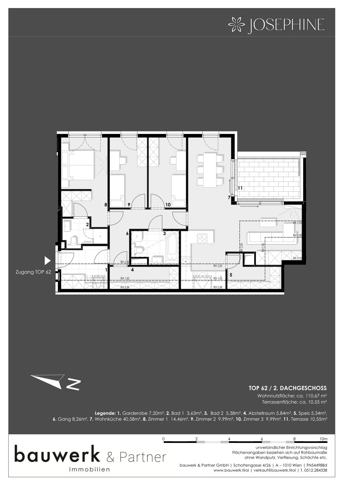 In der Stoffellagasse 7 im 2. Bezirk, direkt am Wiener Prater, wird das Wohnprojekt JOSEPHINE vom renommierten Tiroler Bauträger bauwerk realisiert. Ein besonderes Merkmal dieses Projektes ist der unvergleichliche Blick auf den Prater und das Wiener Riesenrad. Insgesamt werden 60 hochwertige Wohnungen über 7 Etagen mit einzigartigem Grünblick errichtet. Das Angebot reicht von effizienten 2 Zimmerwohnungen bis zur luxuriösen Dachgeschosswohnung. Alle Wohneinheiten verfügen über private Freiflächen. Zudem stehen den Bewohnern ca. 30 Tiefgaragenstellplätze und Kellerabteile zur Verfügung. Das Projekt wurde zudem mit der klimaaktiv Bronze Zertifizierung ausgezeichnet.