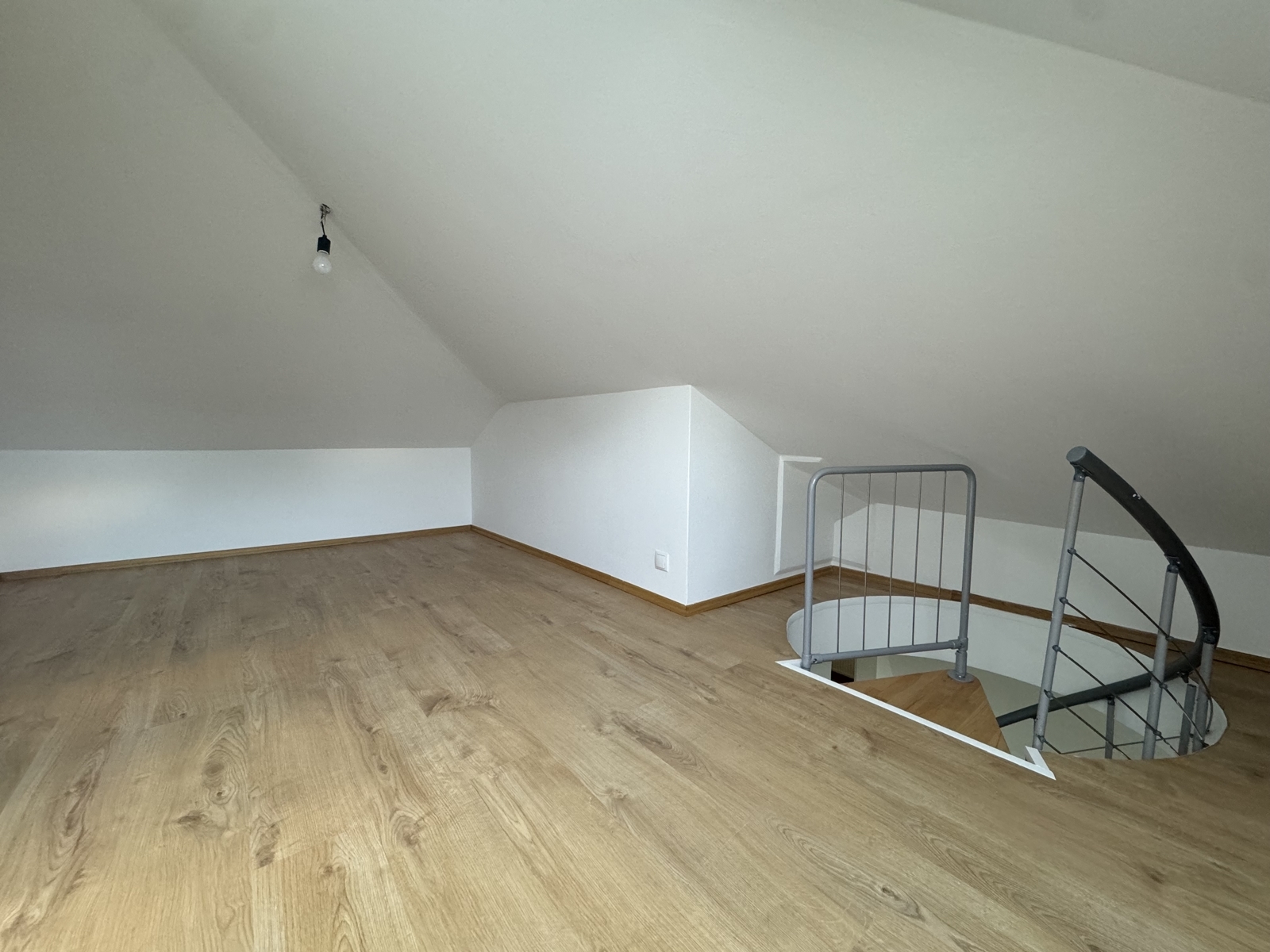• Wendeltreppe führt in den Dachboden mit zusätzlichem Stauraum oder Spielbereich