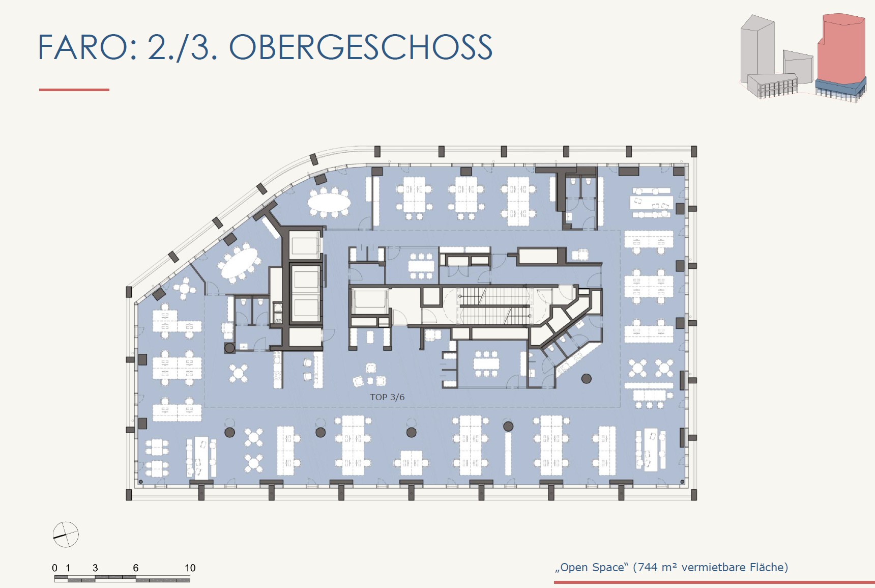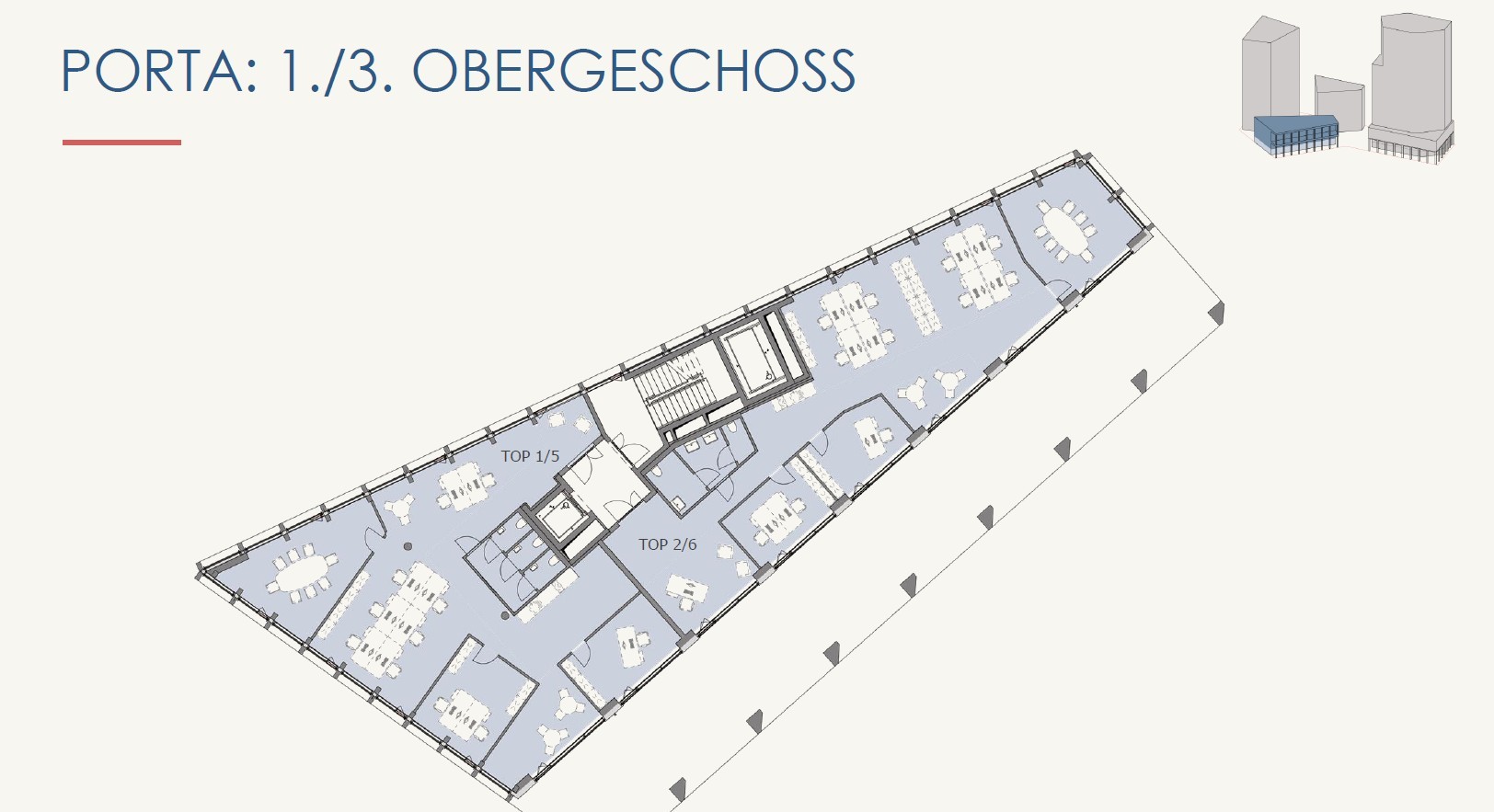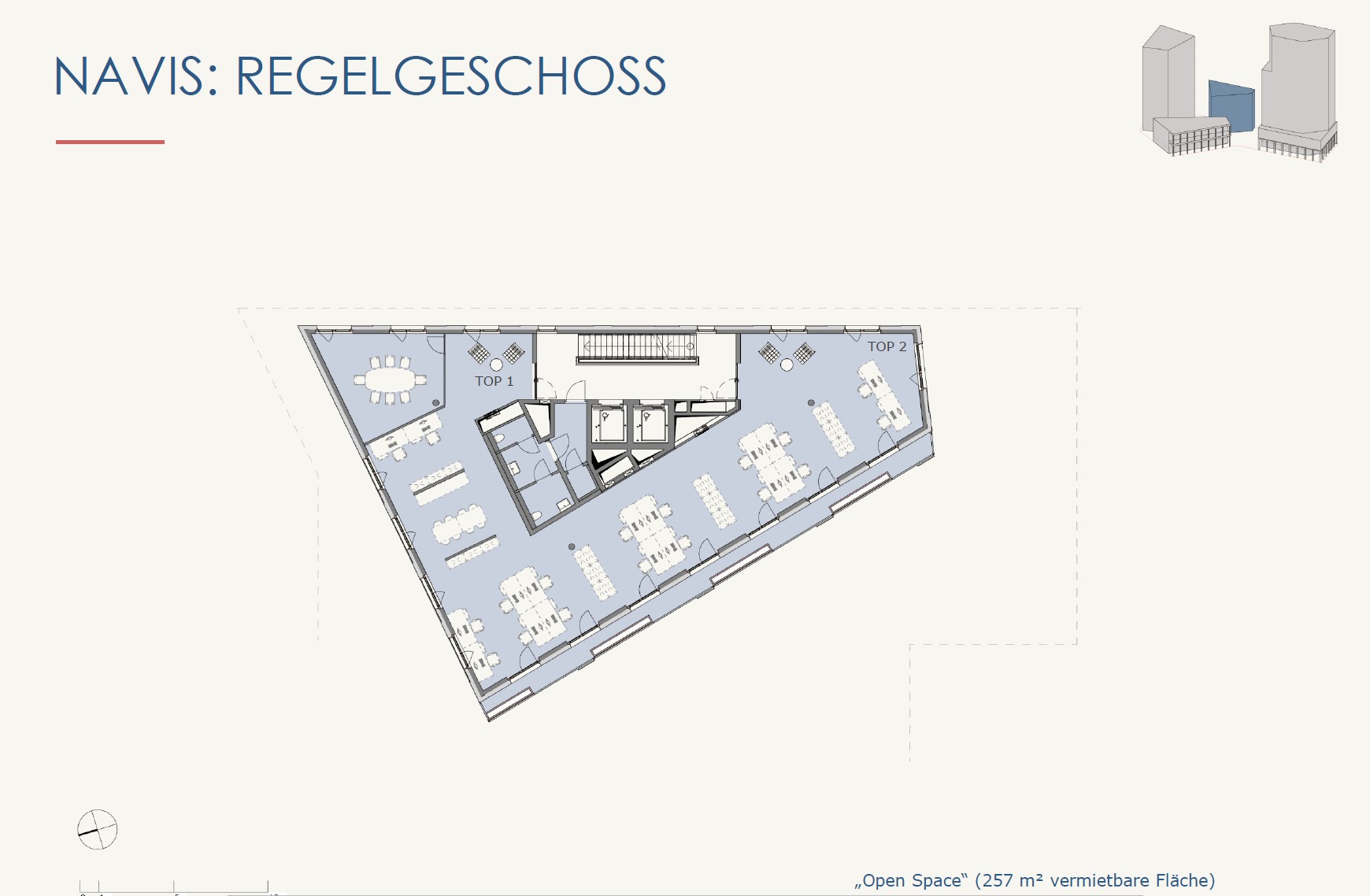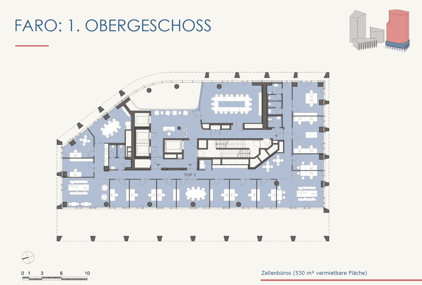 Die Flächenaufstellung beinhaltet die reine Bürofläche exkl. anteiliger Allgemeinfläche.