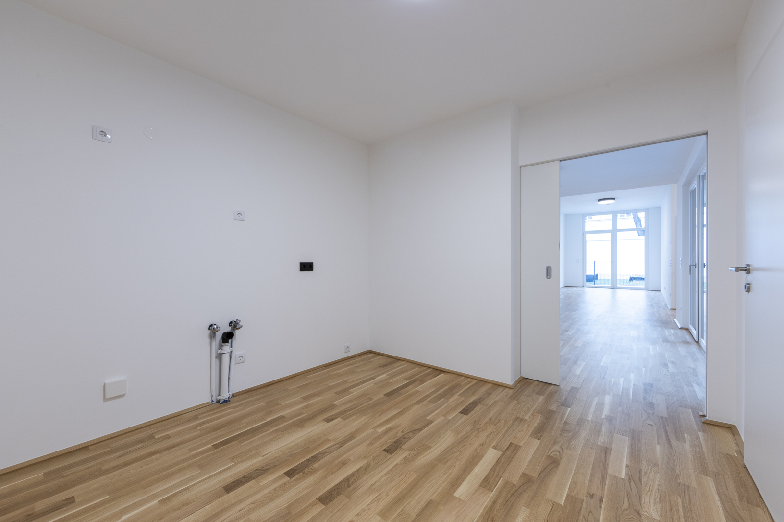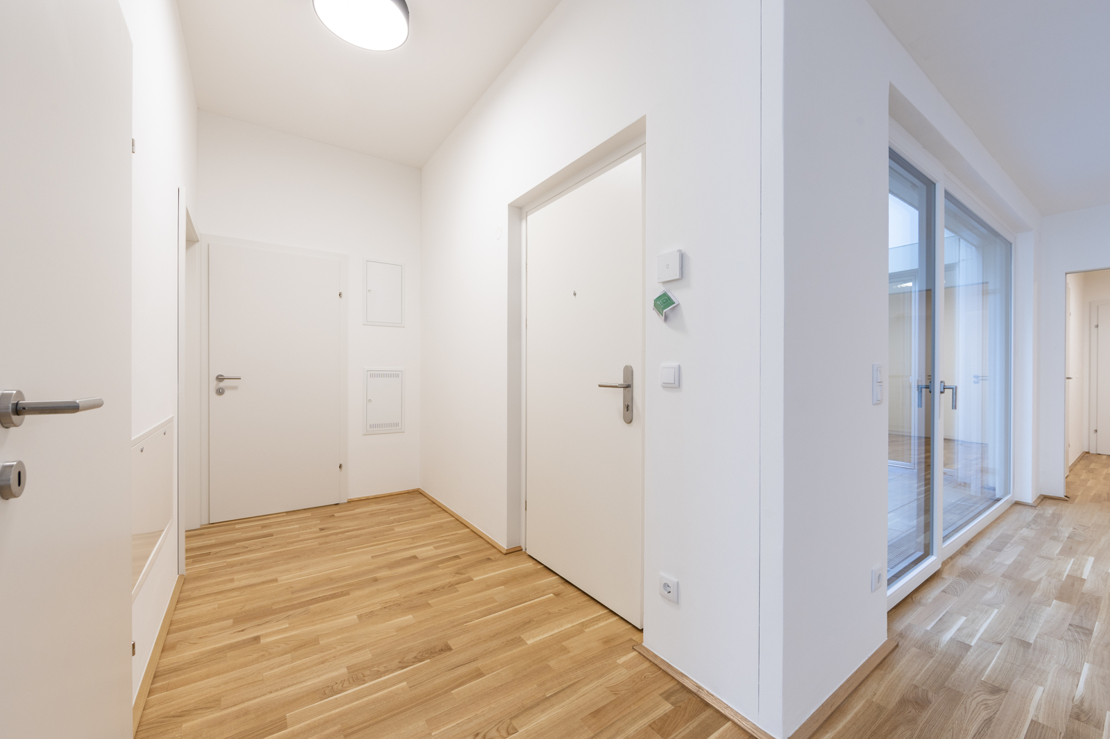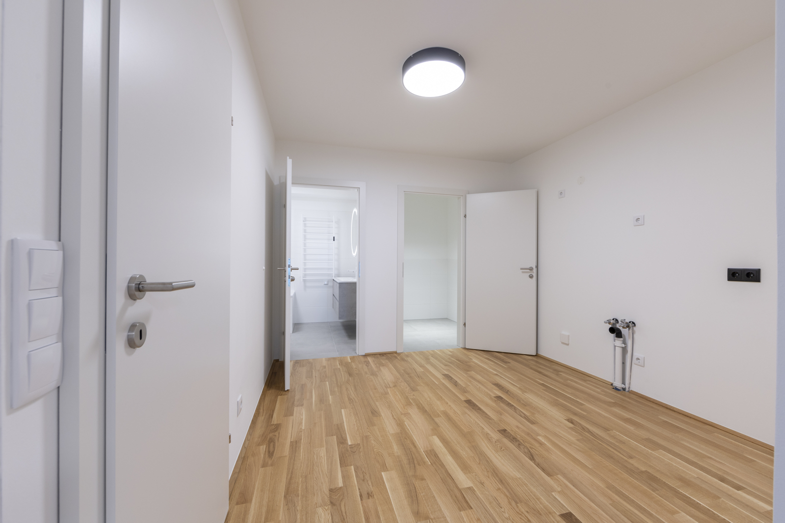 Die Wohnungen verfügen über große, bodentiefe Fenster, die viel natürliches Licht hereinlassen und für eine angenehme Wohnatmosphäre sorgen. Hochwertige Materialien wie Parkettböden in den Wohnbereichen und moderne Fliesen in den Badezimmern unterstreichen den gehobenen Anspruch des Objekts. Je nach Stockwerk bieten die Wohnungen eine wunderbare Aussicht auf die grüne Umgebung oder die beeindruckende Skyline der Donau City.