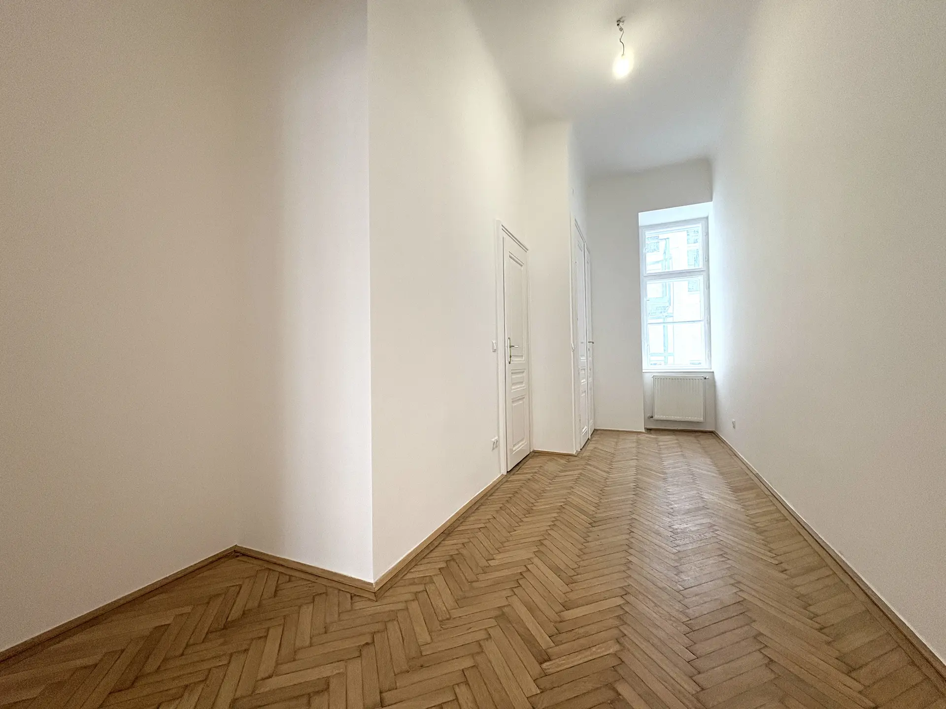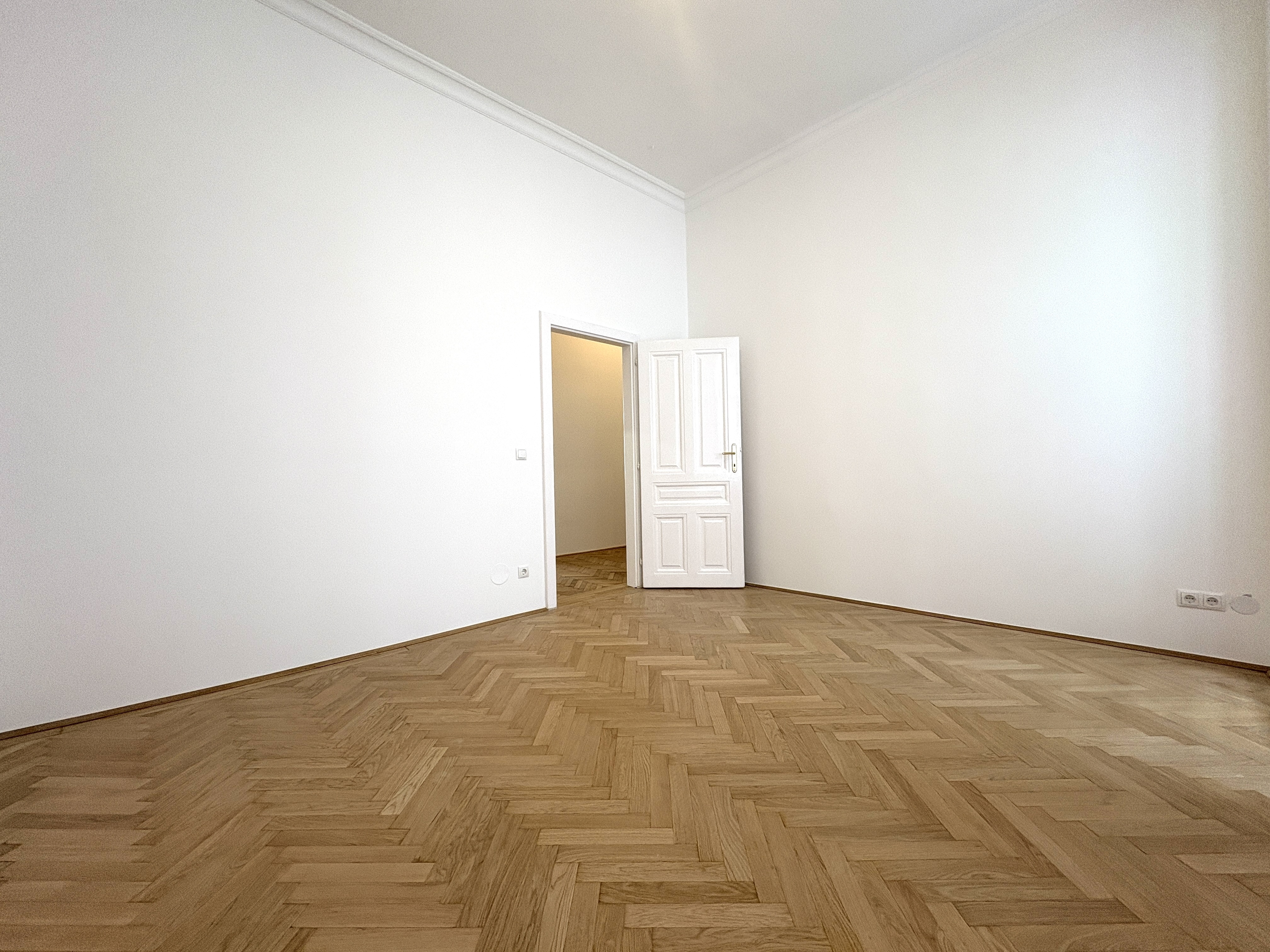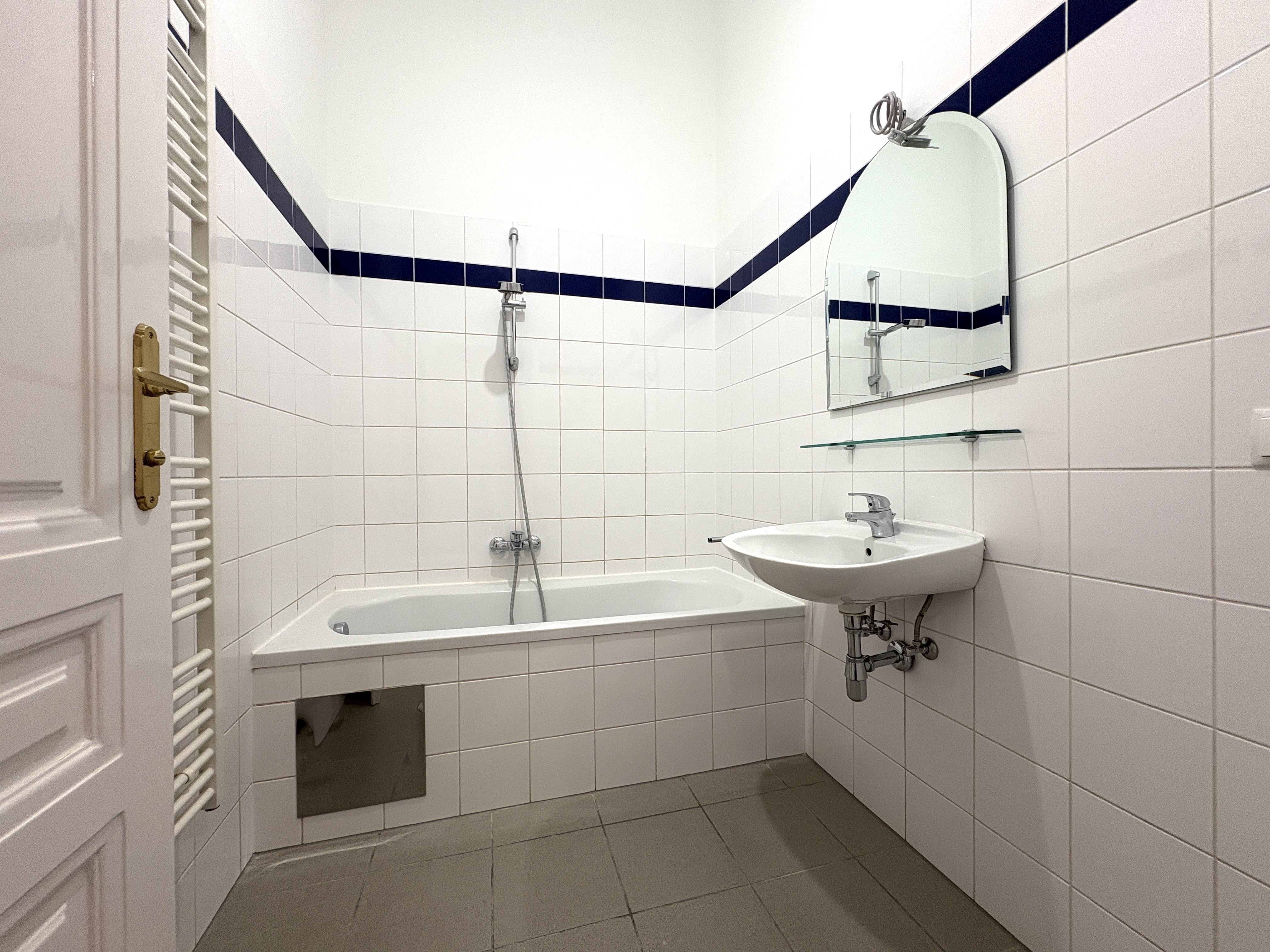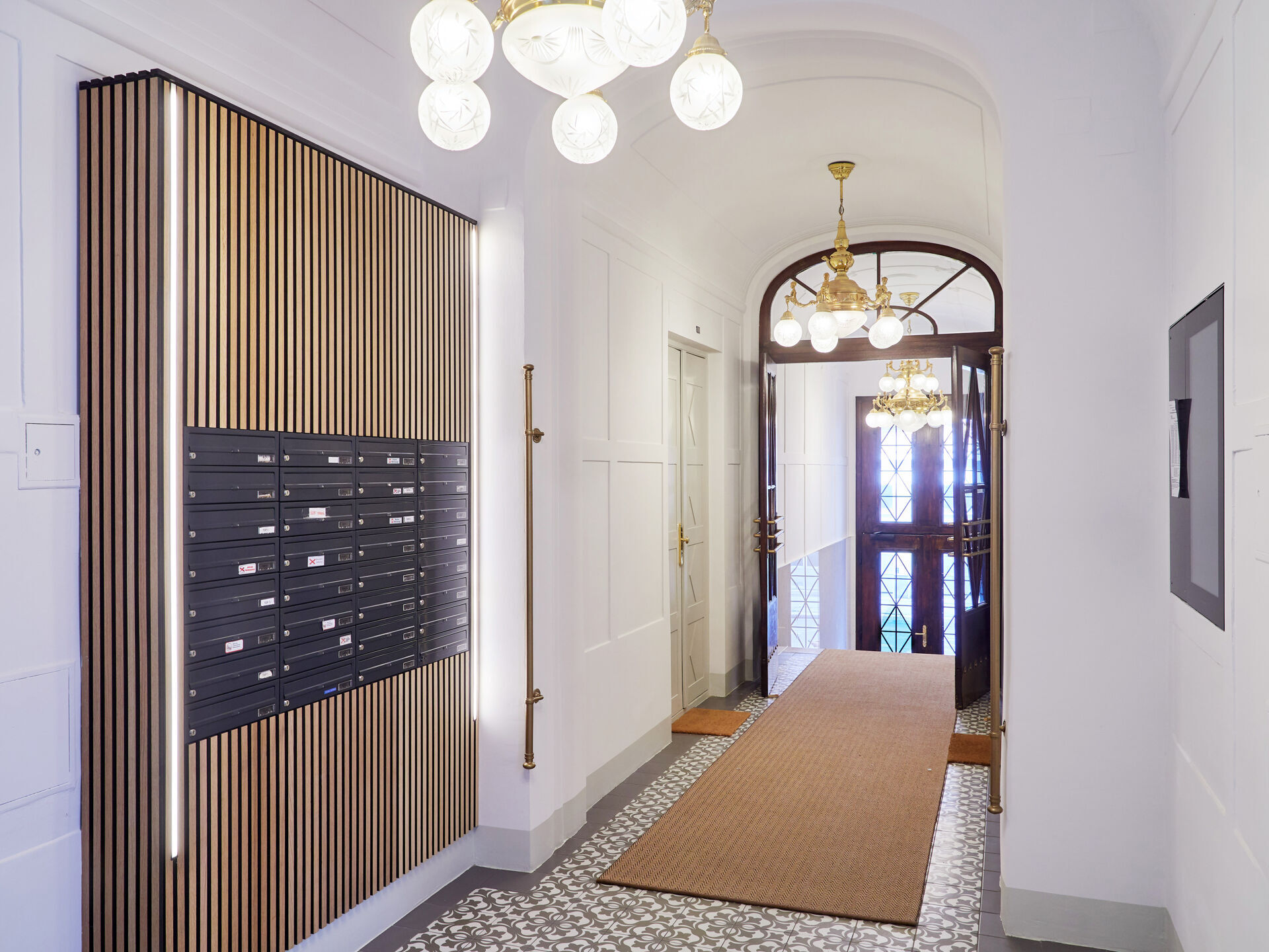 Die Wohnung liegt im Mezzanin, leicht erhöht und damit abgeschirmt vom direkten Straßenleben. Die Kombination aus Straßen- und Innenhofausrichtung sorgt für Helligkeit und Ruhe zugleich. Der klassische Grundriss bietet eine hervorragende Basis für individuelle Gestaltung – ob zeitlos elegant oder modern interpretiert.