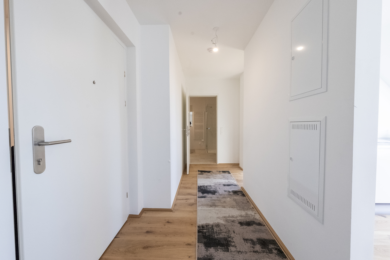 - Eichenparkett Boden und hochwertiges Feinsteinzeug